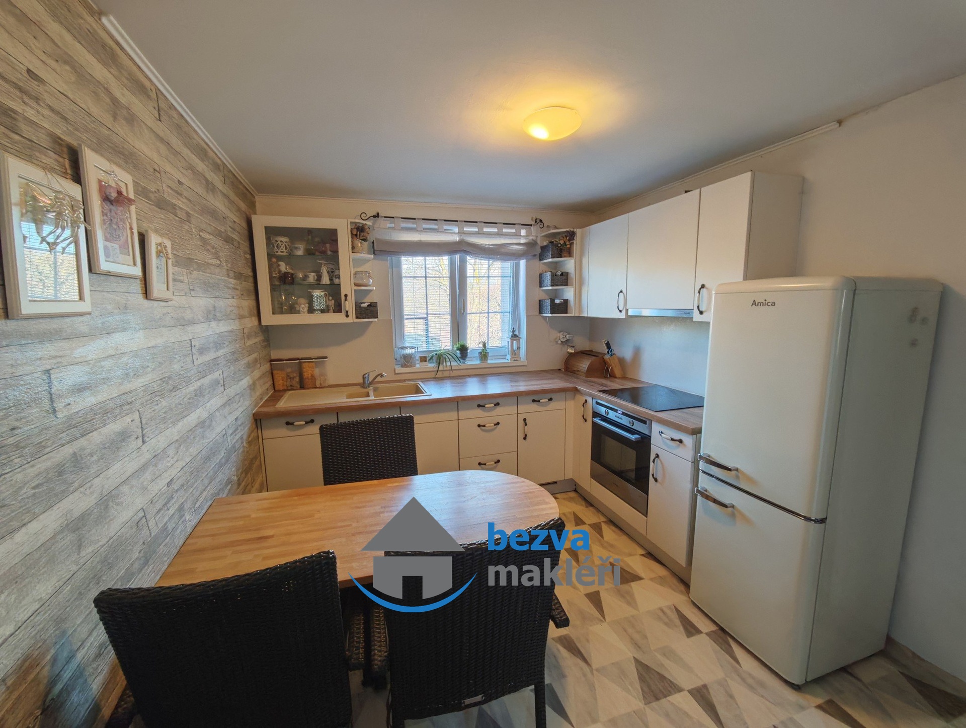 Kuchyně je vybavena zánovní kuchyňskou linkou s vestavnou troubou, sklokeramickou varnou deskou a myčkou a jsou zde i kamna na dřevo. Samozřejmostí je, z kuchyně přístupná, komora na potraviny.
