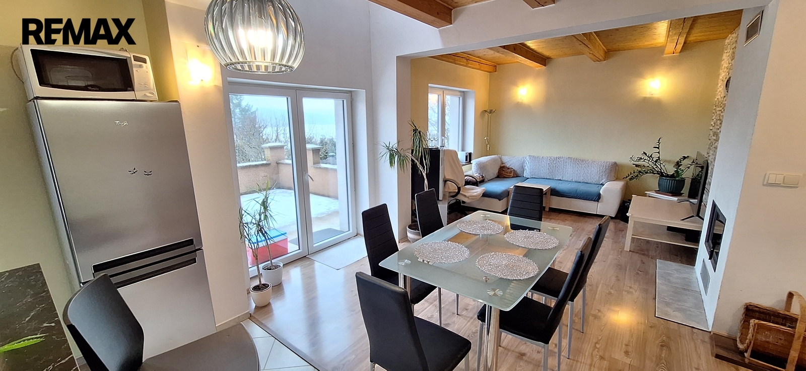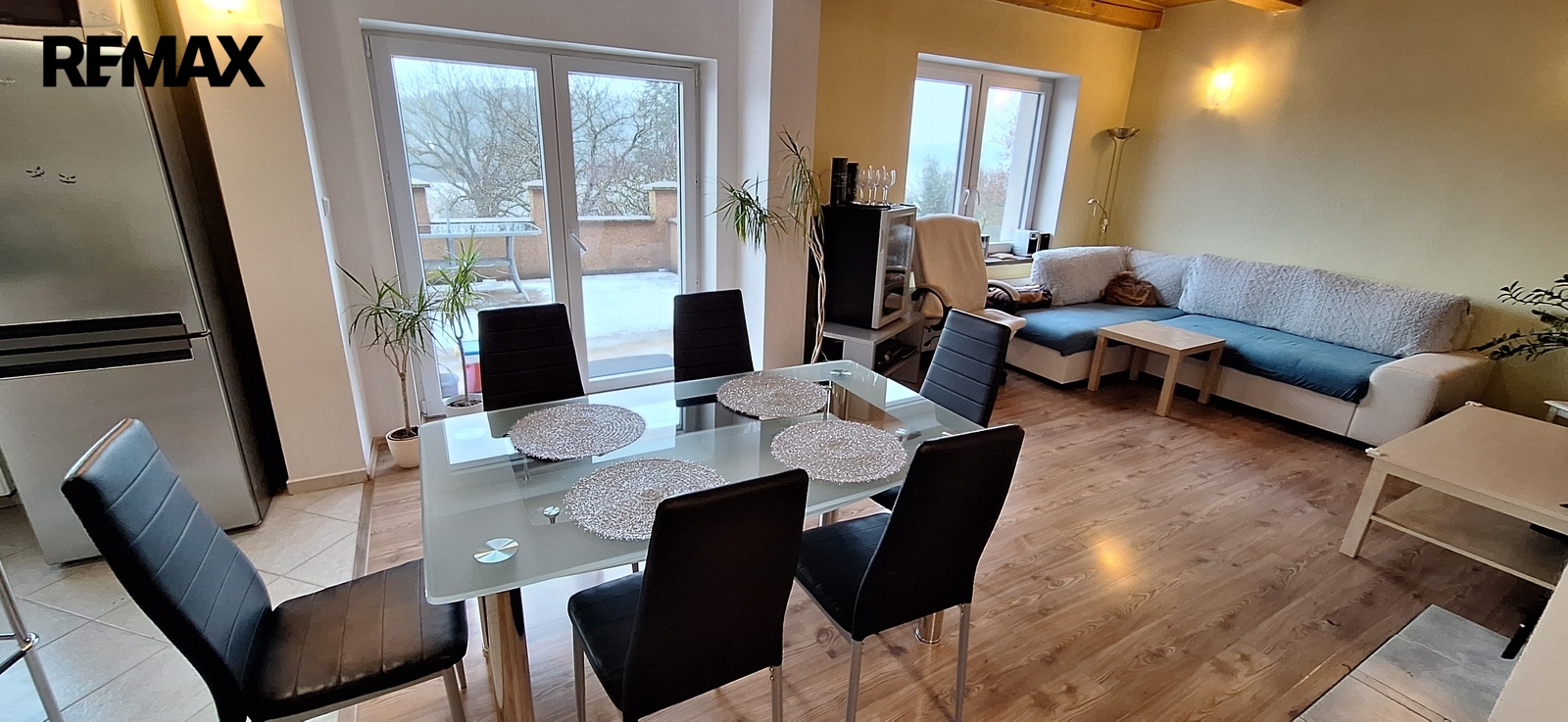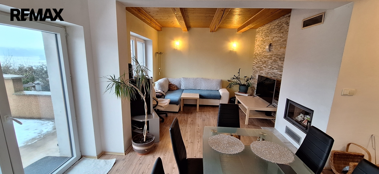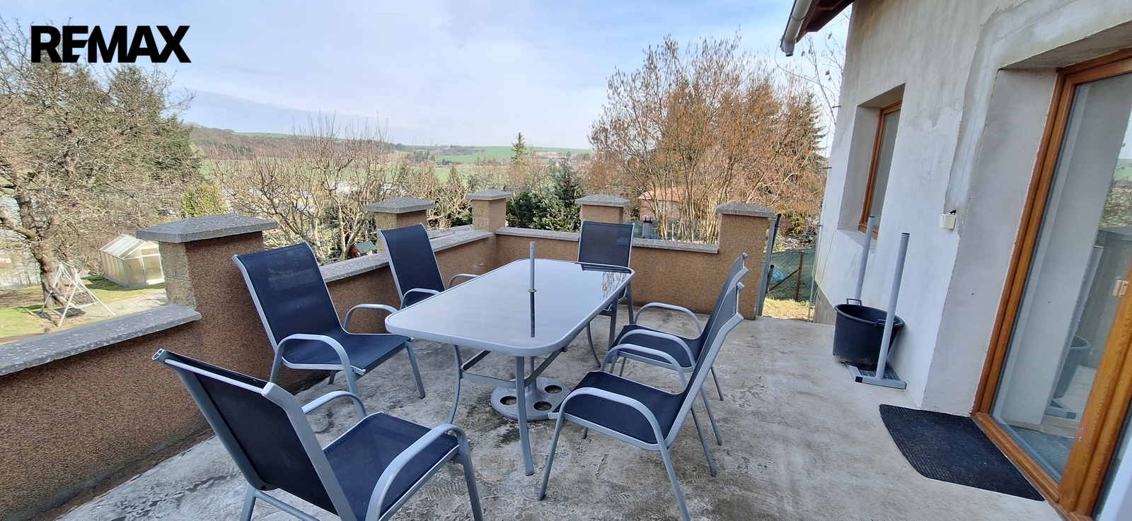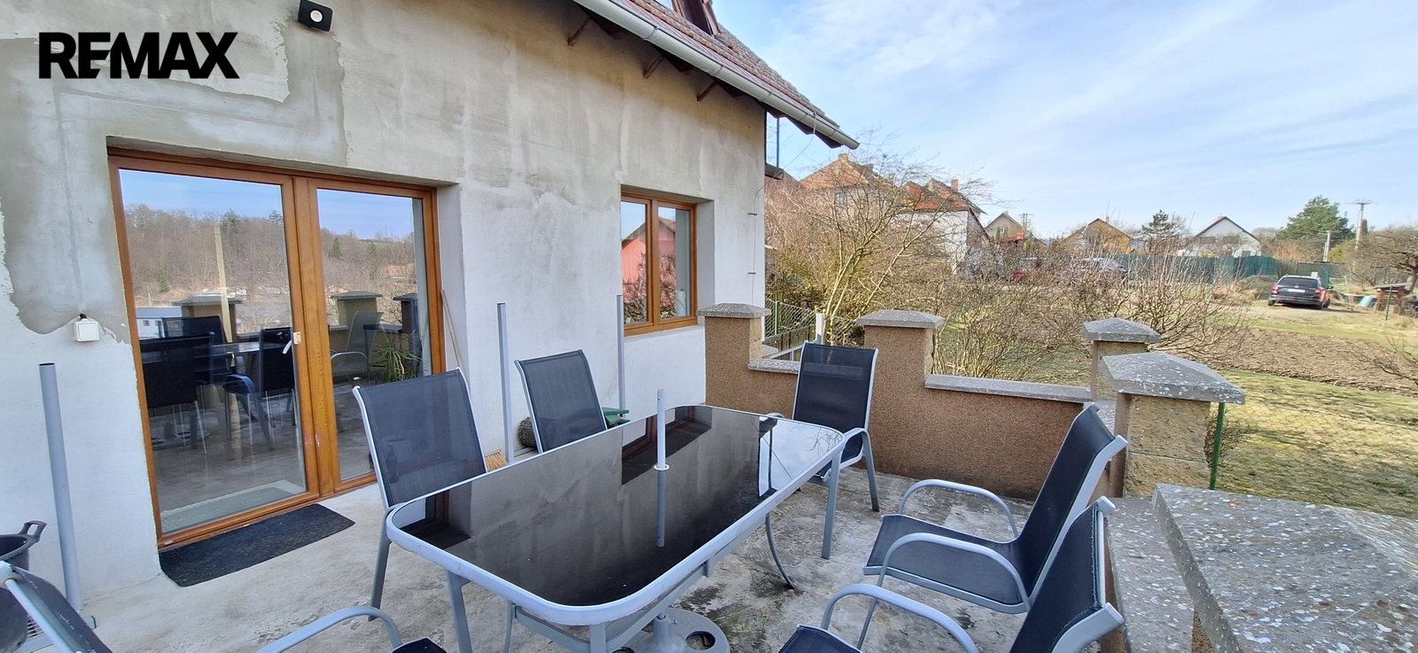 Z obývacího pokoje se jde na terasu. Pod terasou je sklep.