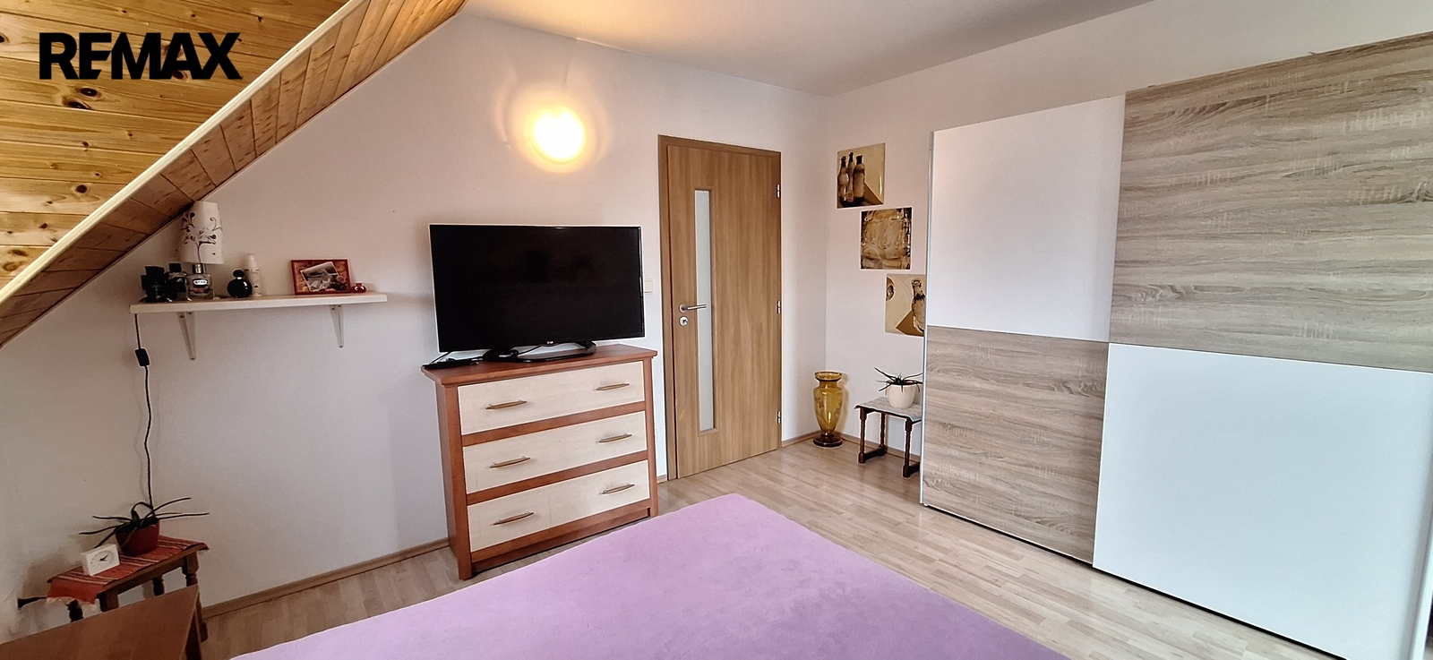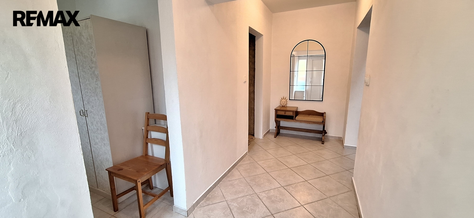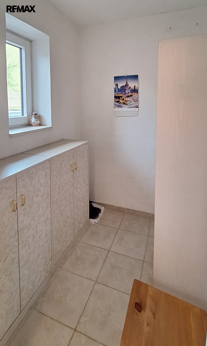 - přízemí: vstupní chodba (7 m2); šatna (3 m2); prostorný obývací pokoj s kuchyňským koutem (35 m2) - kuchyňská linka má vestavěné spotřebiče - trouba, mikrovlnná trouba, myčka nádobí, sklokeramická deska, dřez s baterií, digestoř; místnost připravena na koupelnu (3,5 m2) - je nachystáno připojení na pračku, sprchový kout, obklady, WC; hala před obývacím pokojem (8 m2); místnost s francouzskými dveřmi (15 m2);