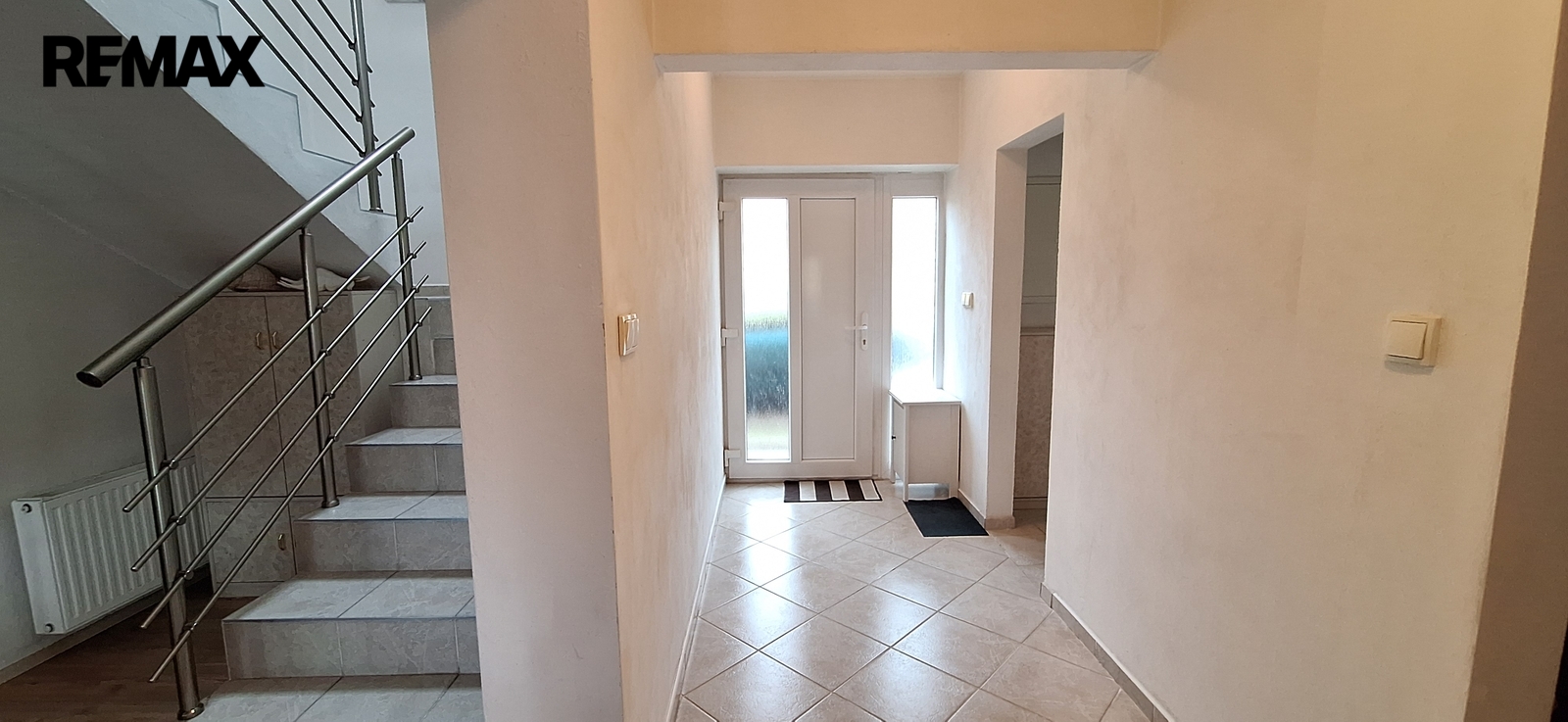V domě jsou plastová okna, dřevěné dveře a dřevěné obložky, podlahy jsou plovoucí a dlažba.