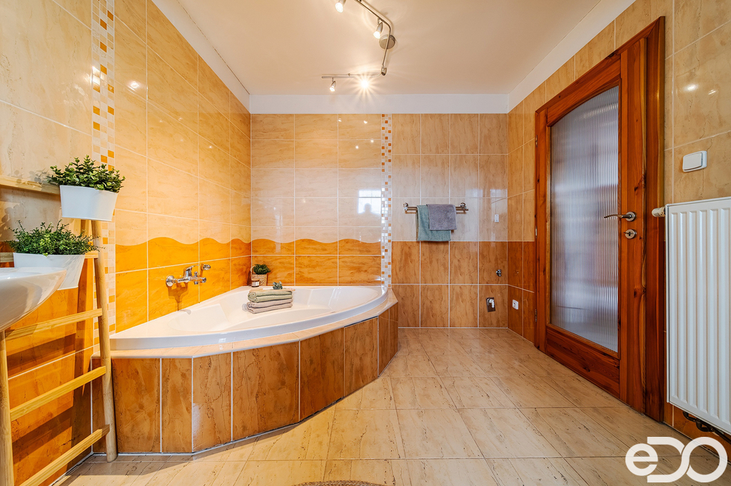 Dominantou tohoto domu je právě výtah, který zaručuje maximální pohodlí a bezbariérový přístup do obou pater. V přízemí vás přivítá prostorná kuchyně s jídelním koutem, komfortní obývací pokoj s přímým vstupem na slunnou terasu, velká koupelna s rohovou vanou i sprchovým koutem, samostatné WC a praktická technická místnost s přímým vstupem do zahrady. V podkroví se pak nachází útulná ložnice s lodžií, dva samostatné pokoje, šatna a další samostatné WC.