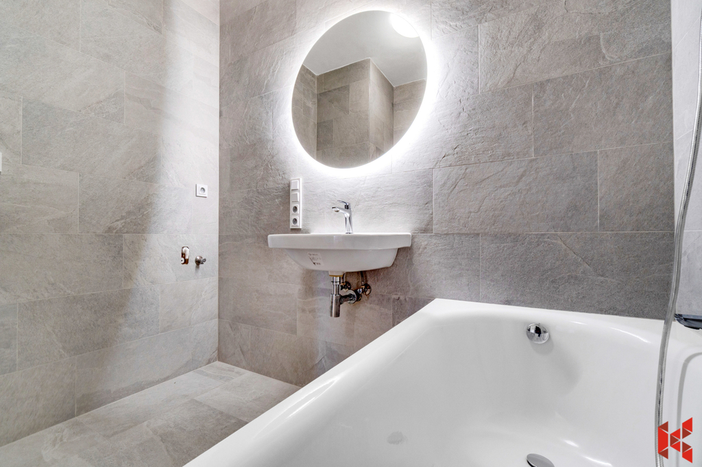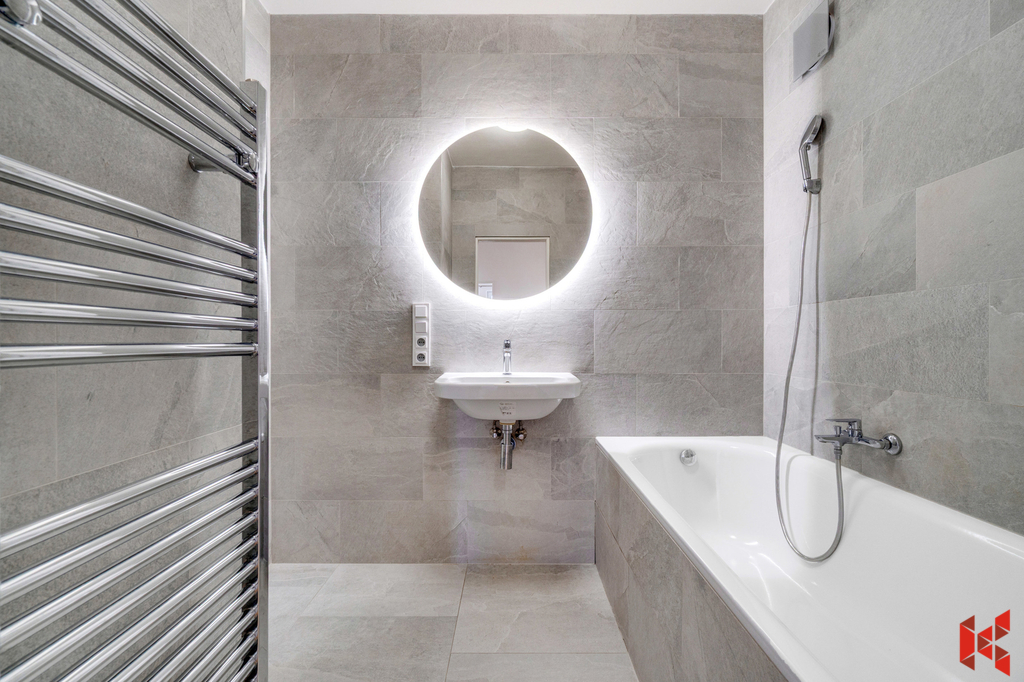 ✔ Koupelnu s vanou Kaldewei, umývadlem a samostatným WC