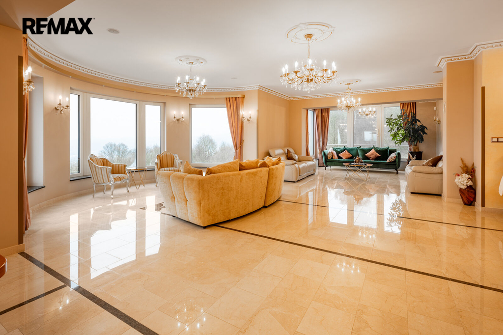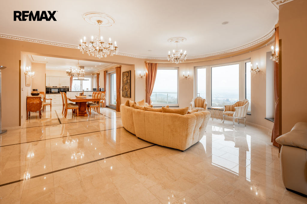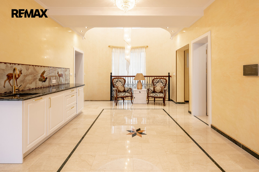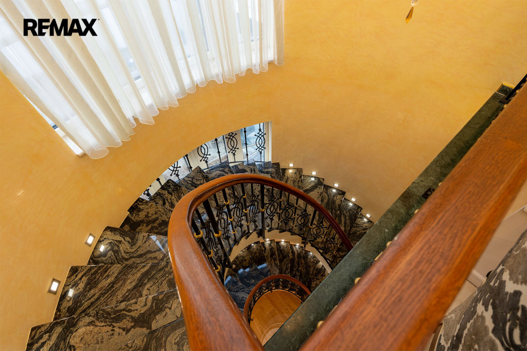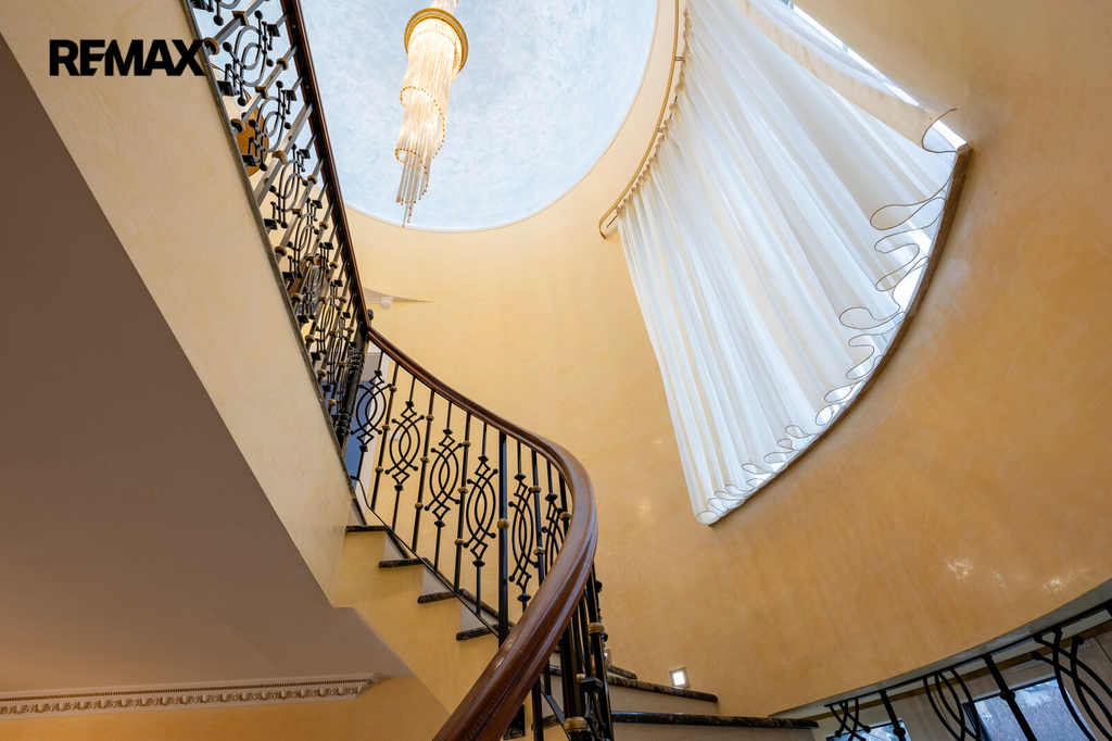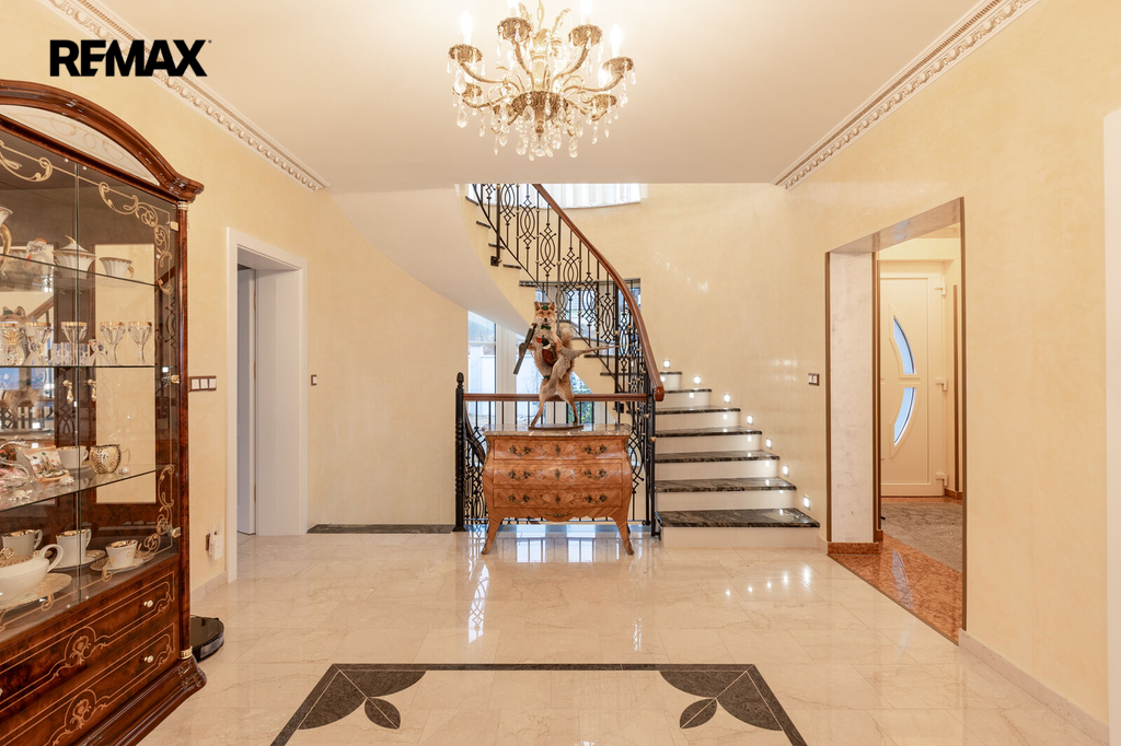 Každý detail tohoto domu byl promyšlen tak, aby z něj vyzařovala elegance a funkčnost. Celý interiér propojuje honosné mramorové schodiště, jehož elegantní linie a řecká kupole nad ním dodávají domu jedinečnou atmosféru a pocit vzdušnosti.
