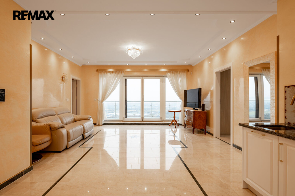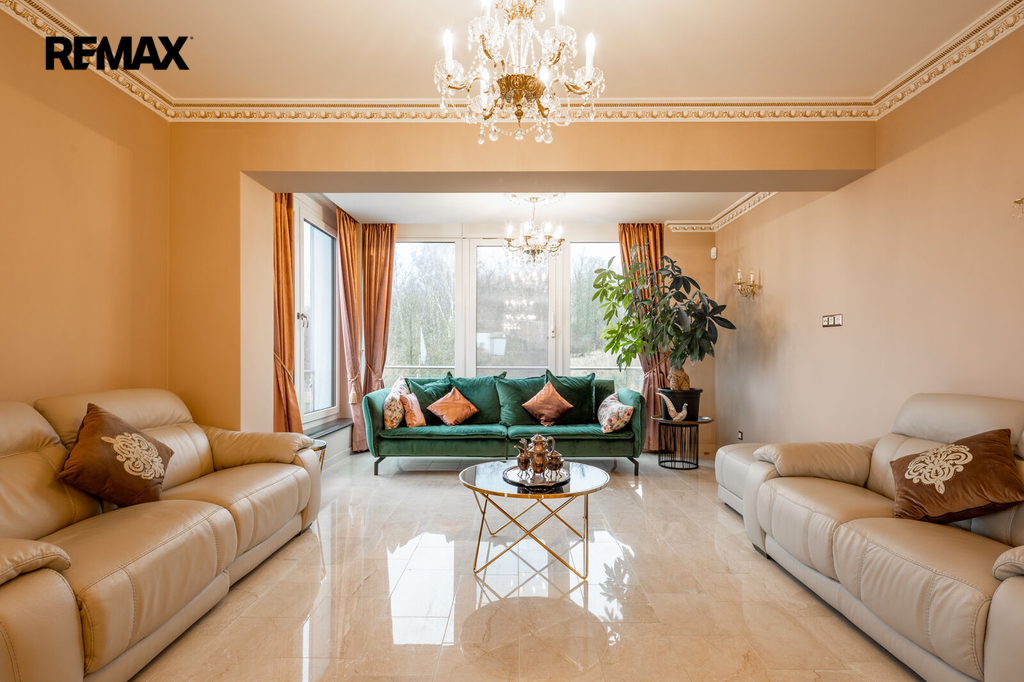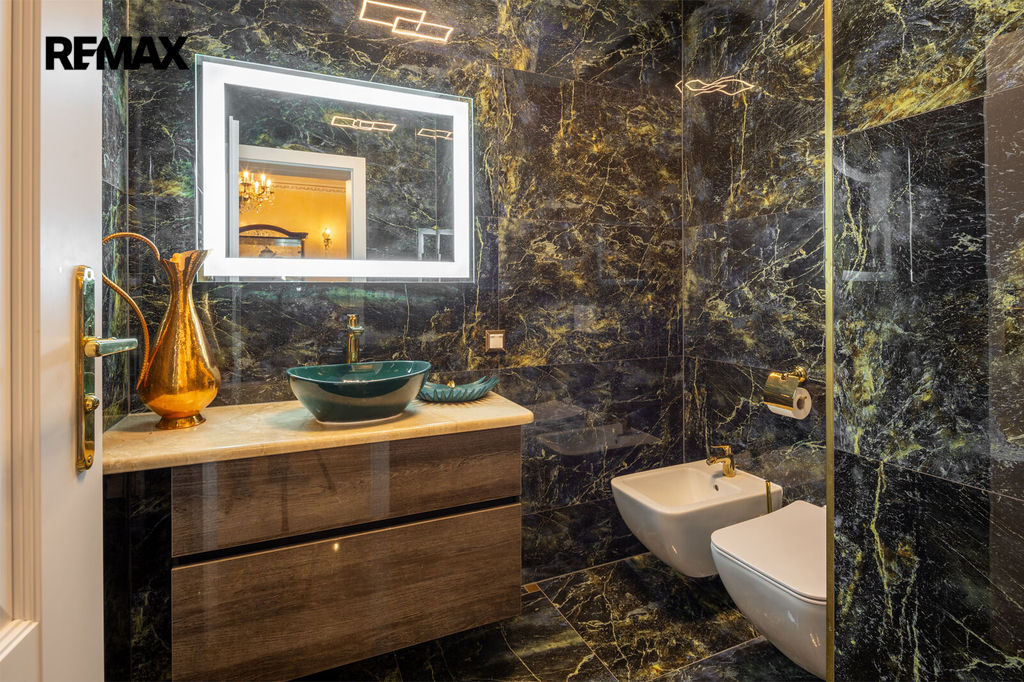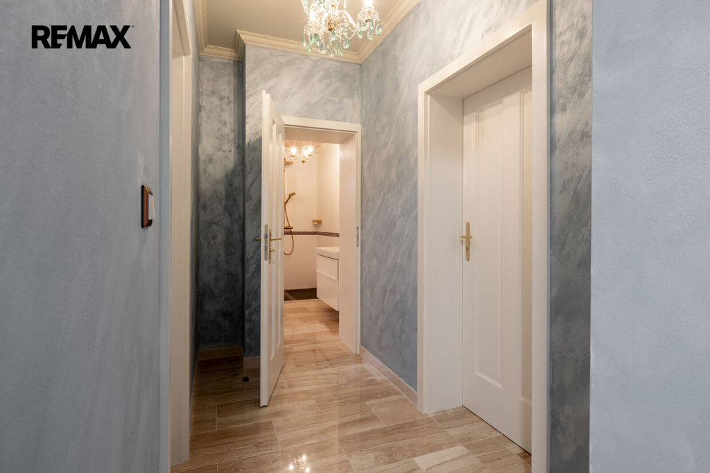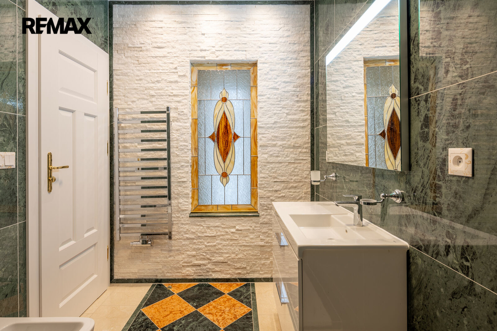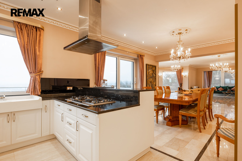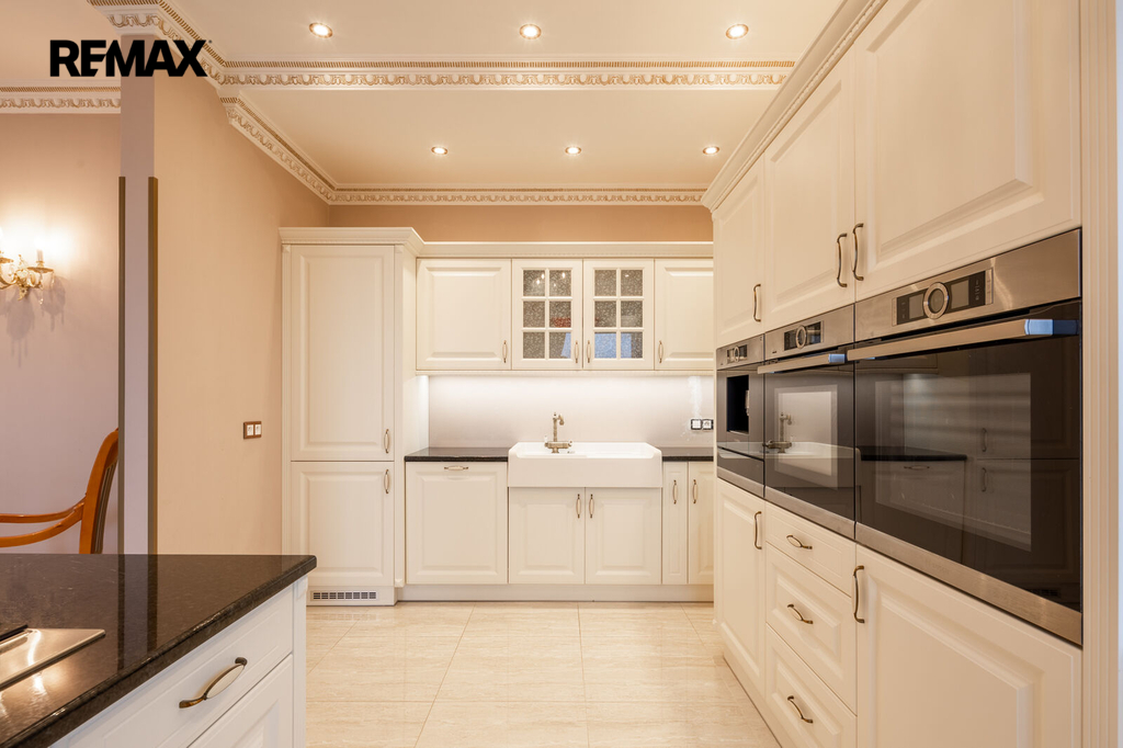 Každý detail tohoto domu byl promyšlen tak, aby z něj vyzařovala elegance a funkčnost. Celý interiér propojuje honosné mramorové schodiště, jehož elegantní linie a řecká kupole nad ním dodávají domu jedinečnou atmosféru a pocit vzdušnosti.