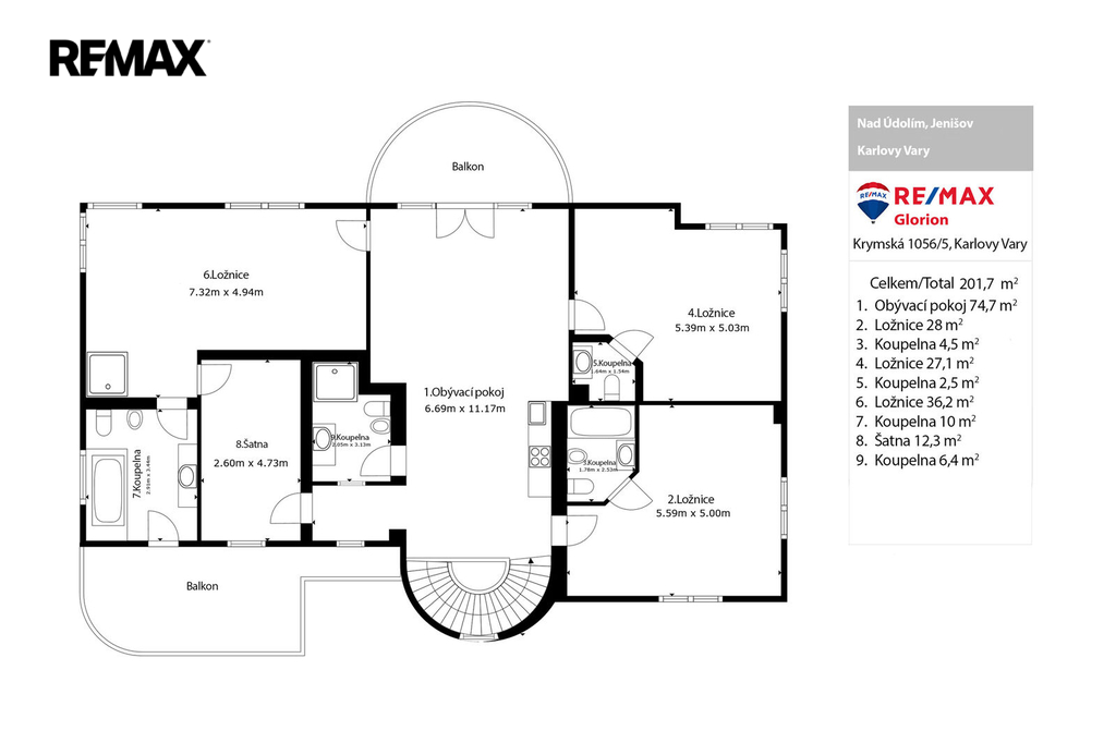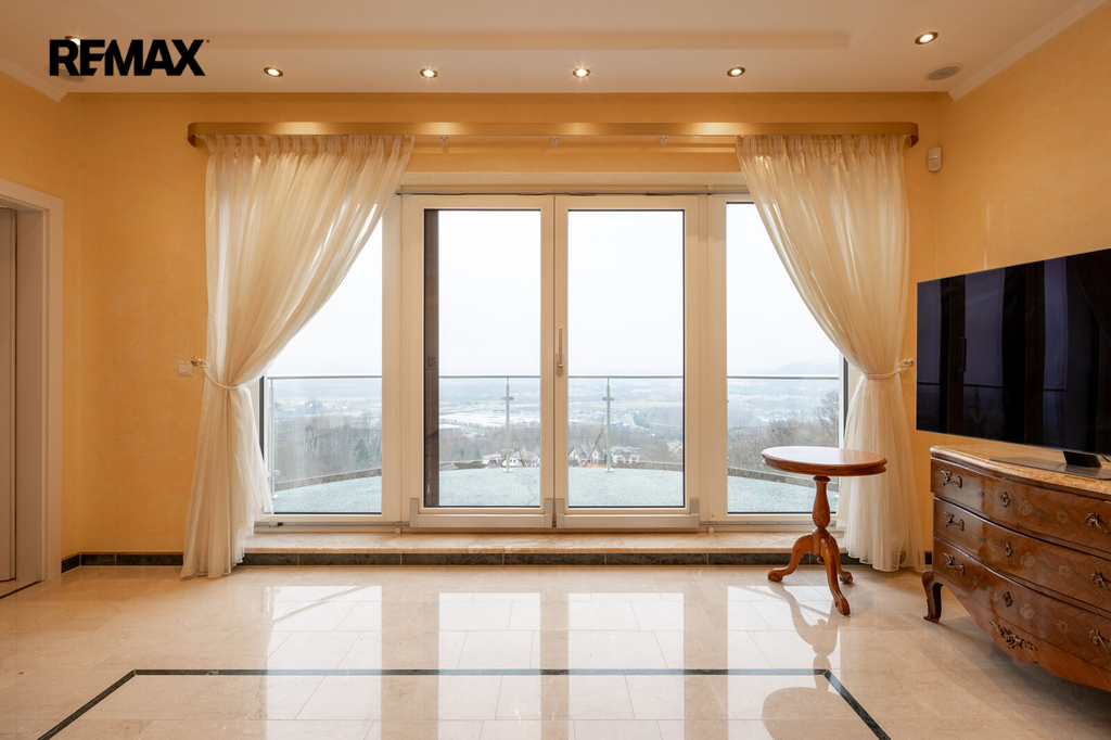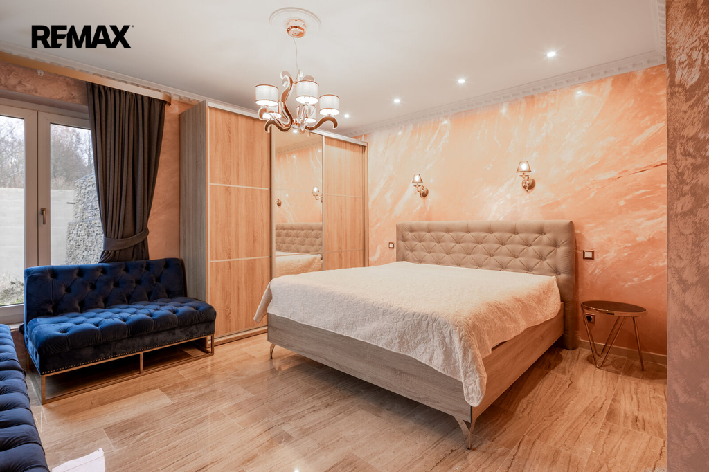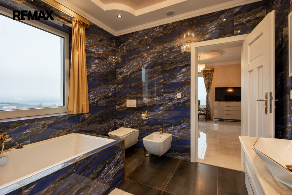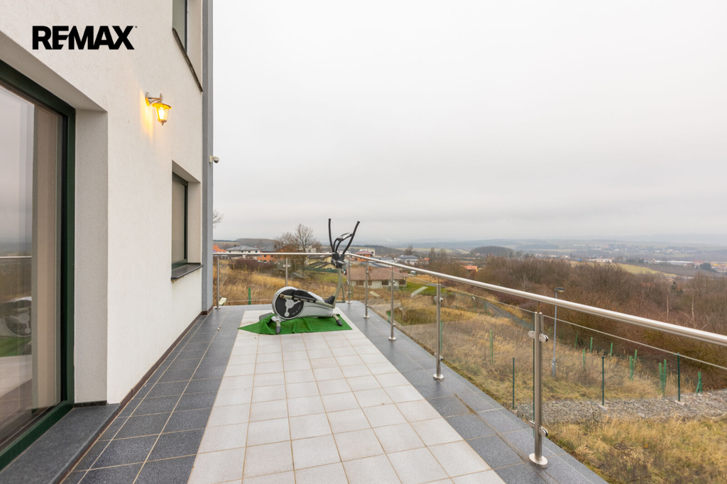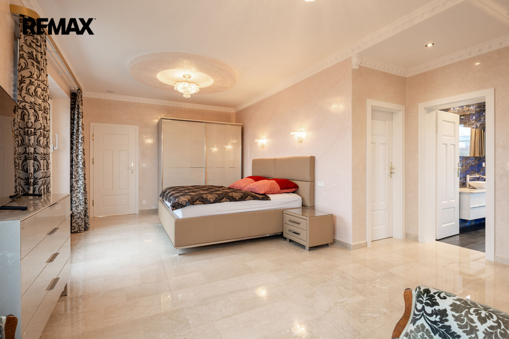 První patro je soukromou zónou domu. Hlavní ložnice s vlastní koupelnou a šatnou vám zajistí maximální komfort. Z prostorného balkonu, který je přístupný z hlavní obývací části, si můžete vychutnat klidné chvíle s výhledem na Karlovy Vary a hory.
