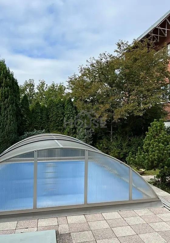 Pozemky 425 m², z toho je 96 m² zastavěná plocha a nádvoří, 329 m² zahrada se zastřešeným bazénem, terasou pro venkovní posezení, kolem bazénu jsou vzrostlé stromy, chránící soukromí lidí u bazénu.