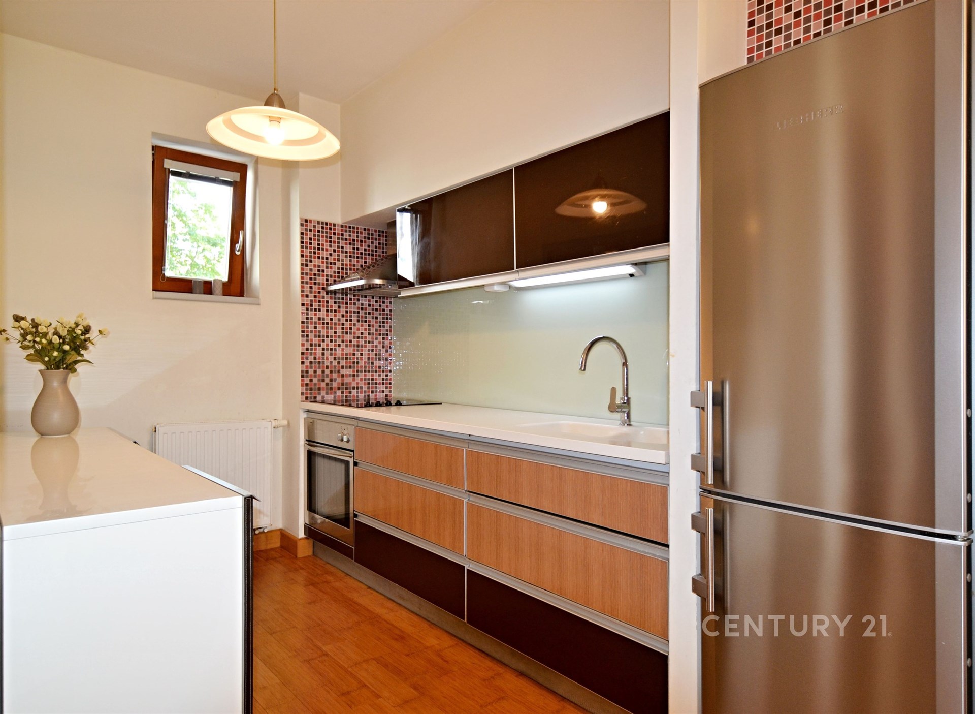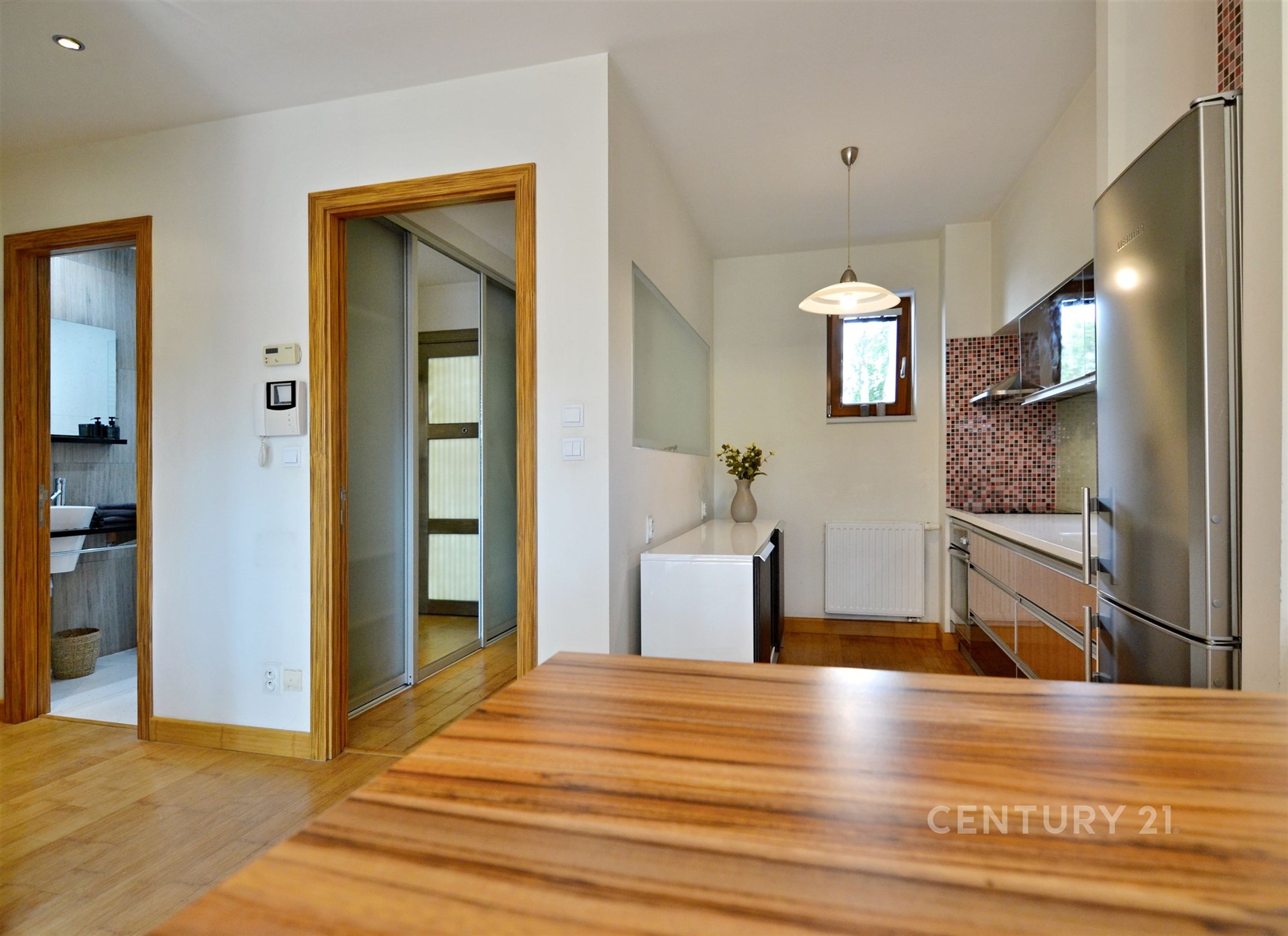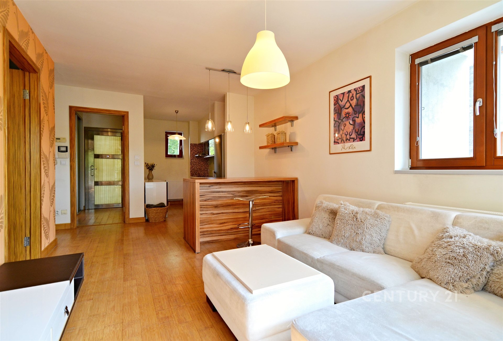 Nabízený byt má dřevěné podlahy, dřevěná okna, vytápění zajišťují radiátory a plynový kotel, koupelna je se sprchovým koutem a toaletou, kuchyně na míru zařízena a vybavena,