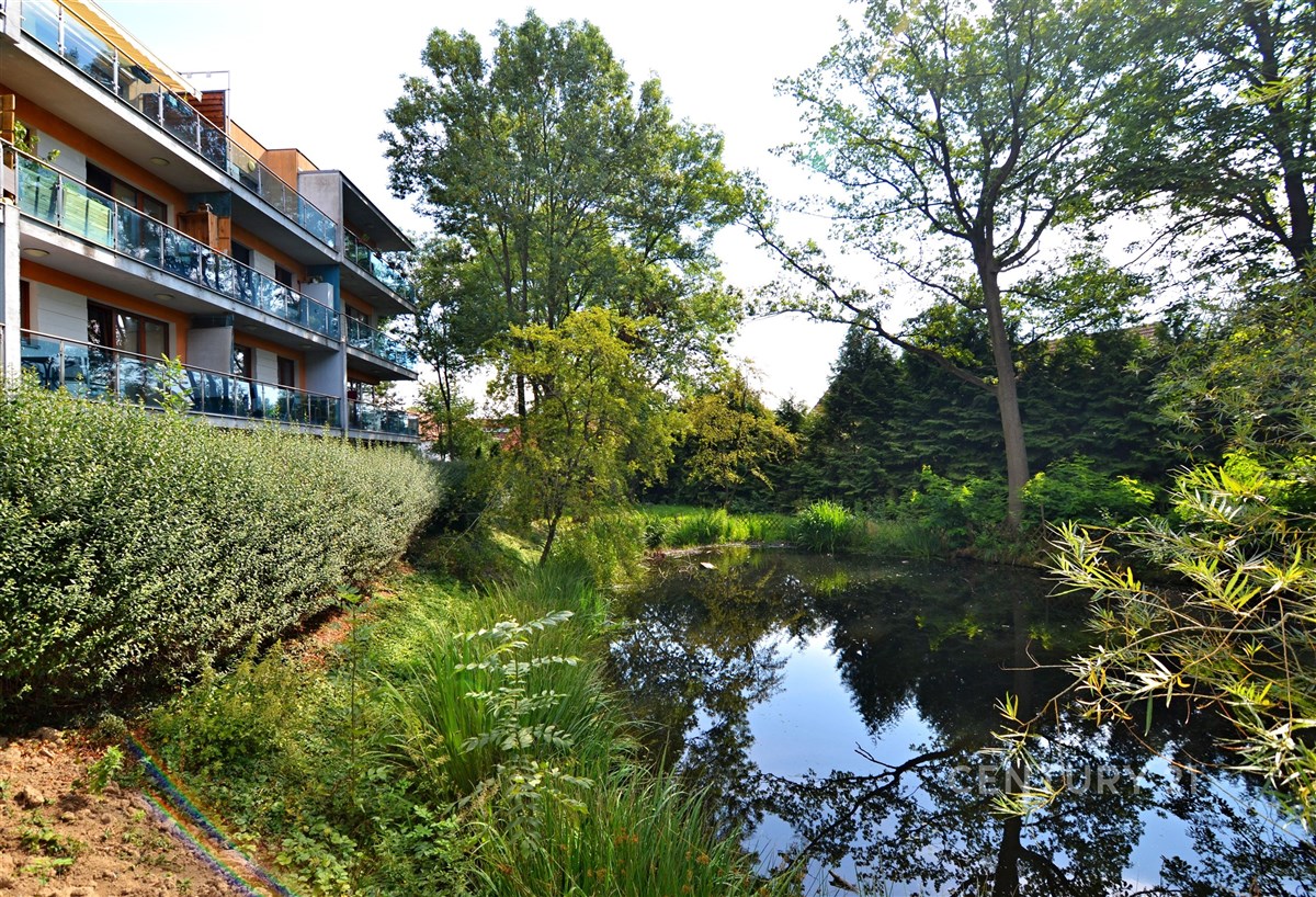 V blízkosti pomyslného centra Jesenice stojí od roku 2008 komorní a uzavřený projekt s názvem Rezidence Jesenice, kde nabízíme k prodeji částečně zařízený byt o dispozici 2+kk 47m2 s rohovým balkónem 14m2 a vlastním venkovním parkovacím stáním. Bytová jednotka se nachází v 1. patře čtyřpodlažního domu s výtahem a má jižní orientaci směrem do společné soukromé zahrady o velikosti cca 4500 m2, která je hlavní devizou celého projektu. Nejdeme zde velké okrasné jezírko, otevřené ohniště či místa k relaxaci a odpočinku. Projekt Rezidence Jesenice se skládá ze dvou bytových domů a svým pavlačovým pojetím, umístěním uprostřed již zmíněné zeleně a kompletním oplocením celého pozemku, navozuje příjemnou atmosféru dovolenkových apartmánů.