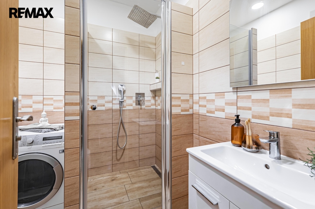 Interiér je vybaven prostornou kuchyňskou linkou se spotřebiči včetně myčky, sporáku, lednice a digestoře. Koupelna po rekonstrukci je zařízena sprchovým koutem a toaleta je samostatná. Plovoucí podlahy jsou kombinovány s keramickou dlažbou, což zajistí snadnou údržbu a příjemný vzhled.