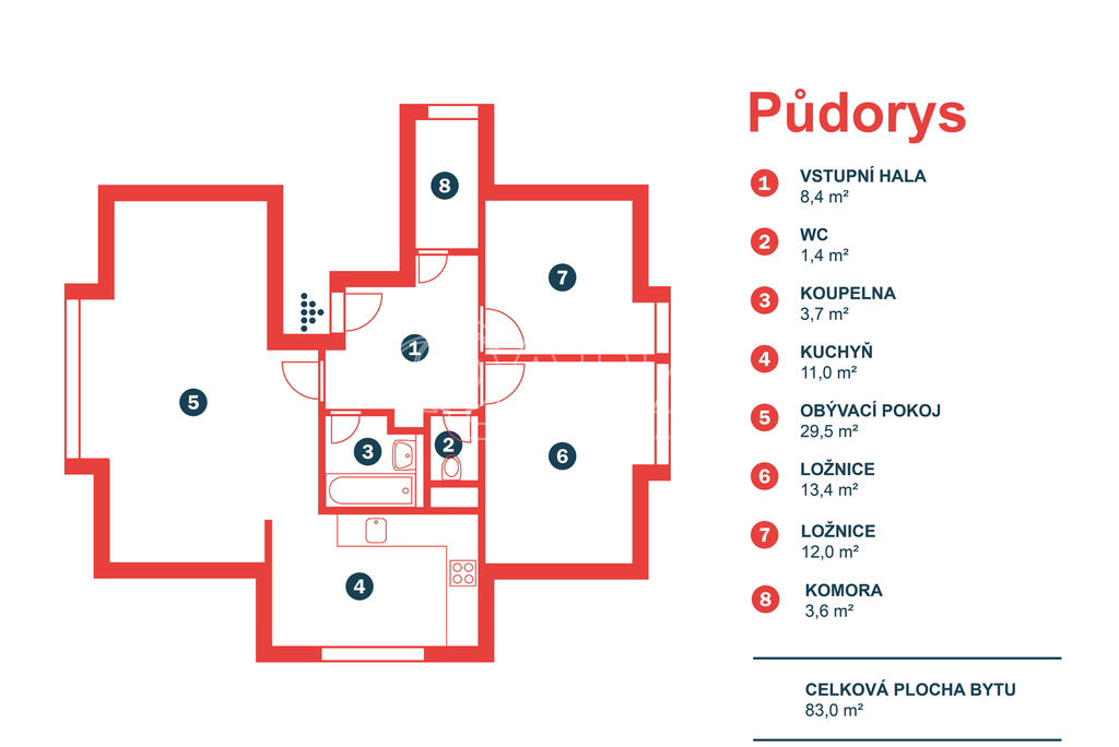 | Dispozice/podlahová plocha: | 3+1/84 m² |
