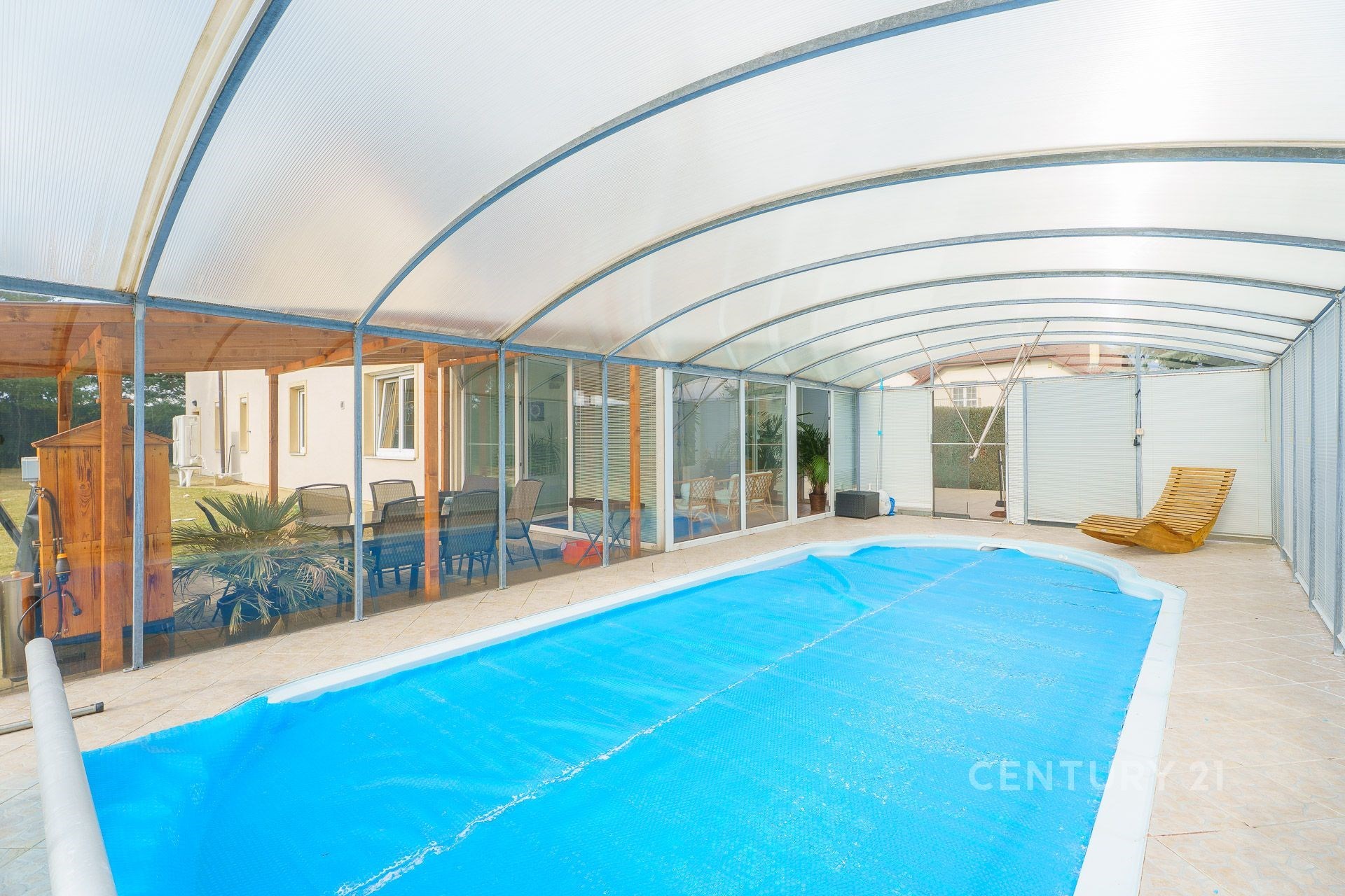 Nabízíme k pronájmu prostorný rodinný dům s krytým bazénem, zimní zahradou, 5 ložnicemi u 4 ložnic je šatna, 3 koupelnami, 3 terasami a upravenou zahradou.
