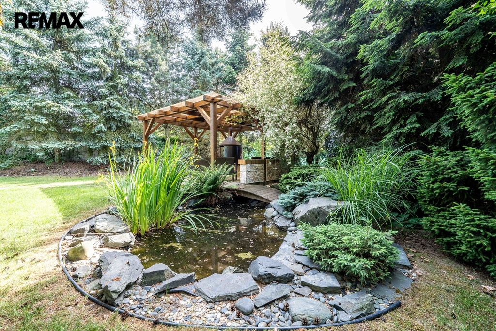 K domu náleží zahrada o celkové rozloze 1692 m². Dolní část pozemku lemuje Jesenický potůček plochou 170 m2. Na pozemku s udržovaným trávníkem se nachází altán, veranda s grilem, jezírko a zahradní domek o velikosti 15 m². Součástí je také automatický centrální zavlažovací systém.