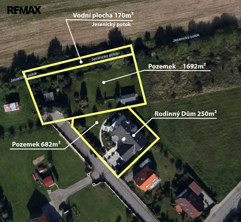 Rodinný dům s vlastním potokem a velkým pozemkem, Jesenice, Praha-západ.