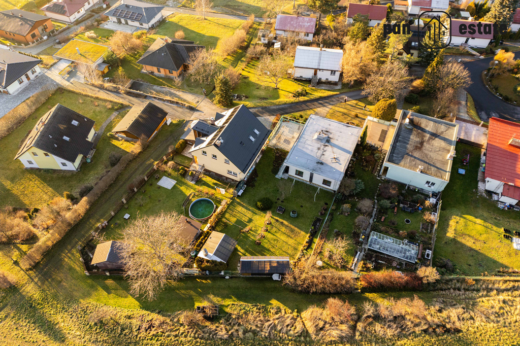 Rodinný dům byl kolaudován v roce 1980 a je postaven ze zdiva o tloušťce cca 450 mm. Stavba je průběžně udržovaná, ve velmi dobrém technickém stavu a ihned obyvatelná, bez nutnosti zásadních investic. Zároveň nabízí prostor pro citlivou modernizaci dle představ nového majitele. Dům je osazen kvalitními dřevěnými okny s izolačními dvojskly, je napojen na vodovod a kanalizaci a vytápění je řešeno kondenzačním kotlem v kombinaci s krbovými kamny v hlavním obytném prostoru. V minulosti byly provedeny technické úpravy, zejména zateplení a nová střešní krytina, izolace a oprava terasy, zateplení ložnice ve 2. NP a další udržovací práce.