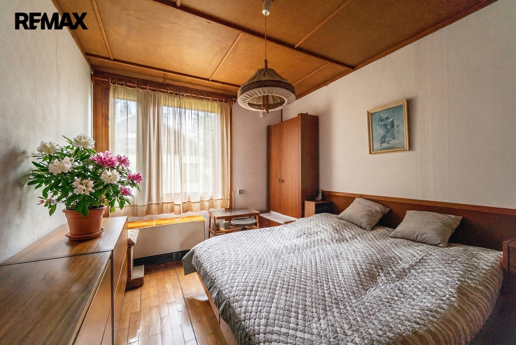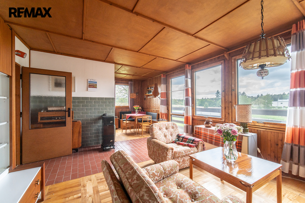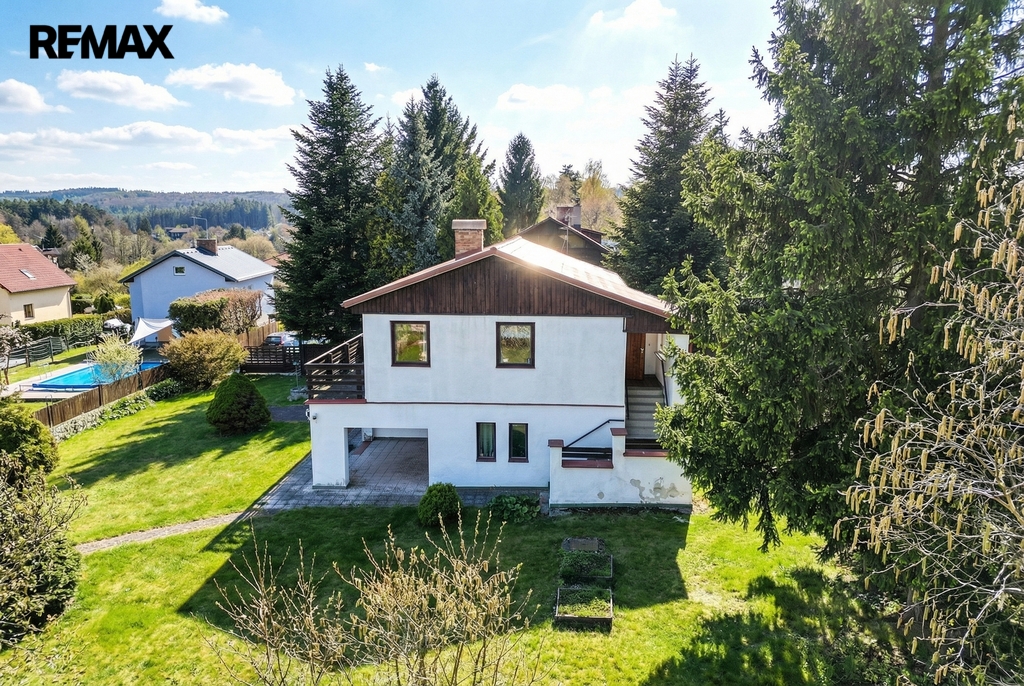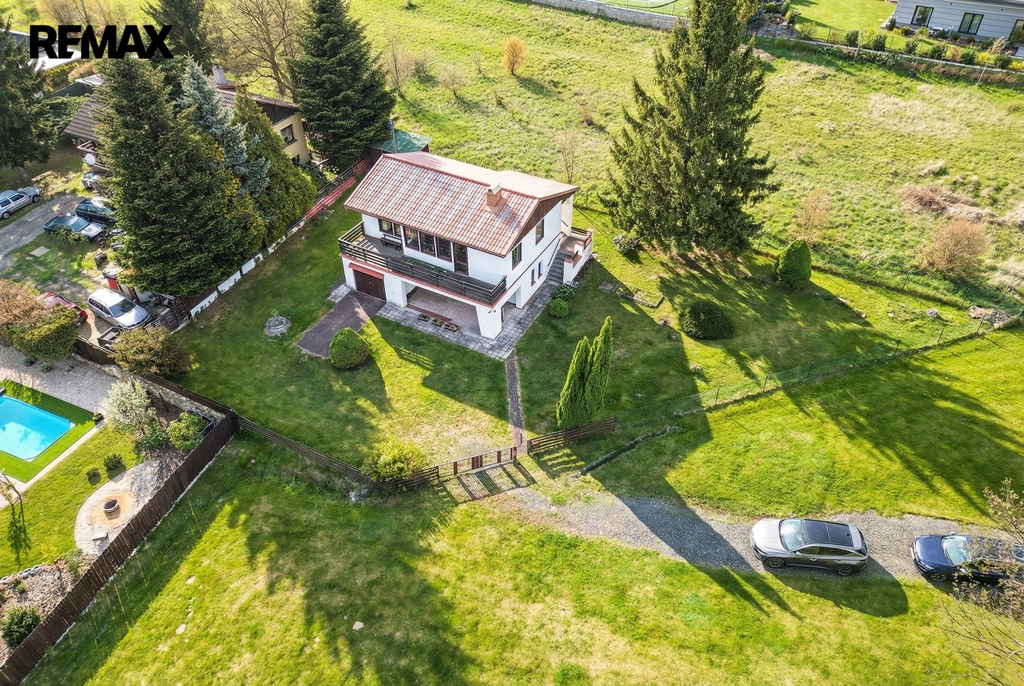 Nemovitost z roku 1982 se rozkládá na pozemku o celkové výměře 1 968 m² (dvě samostatné parcely). Součástí je garáž, dvě terasy, dvě koupelny a promyšlené dispoziční řešení vhodné i pro dvougenerační bydlení.