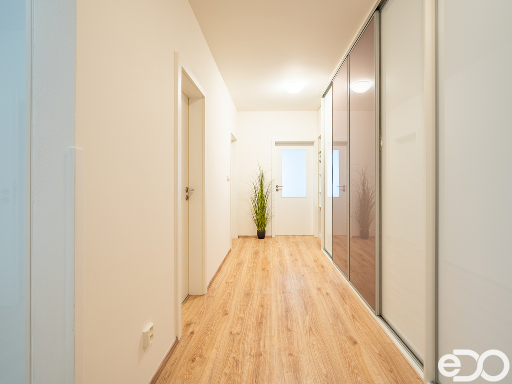 Velkým benefitem je množství vestavěných skříní v chodbě, které poskytují nadstandardní úložné prostory.