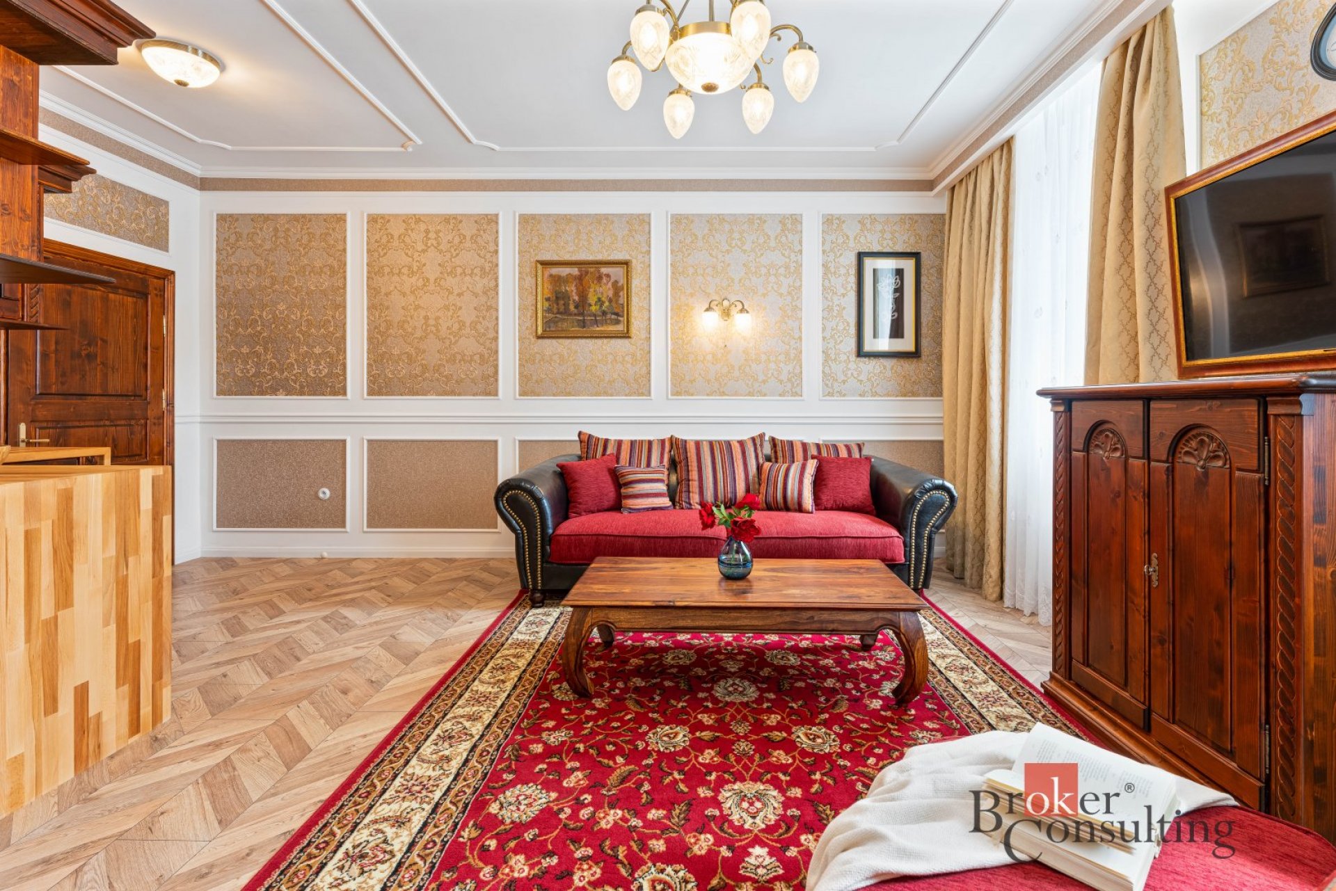 Hotel prošel rozsáhlou a citlivou rekonstrukcí s důrazem na detail, kvalitu materiálů a řemeslné zpracování. Interiéry i exteriér jsou laděny v přírodním duchu masivního dřeva a kamene, s respektem k původnímu charakteru objektu. Celý areál je nabízen včetně kompletního vybavení – stačí převzít klíče a můžete začít provozovat.