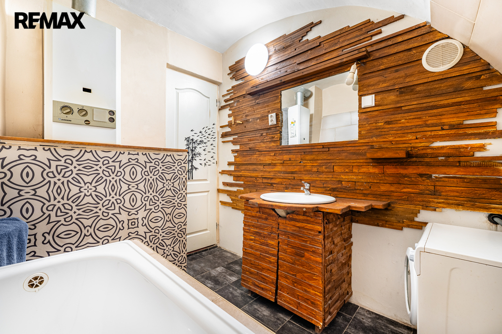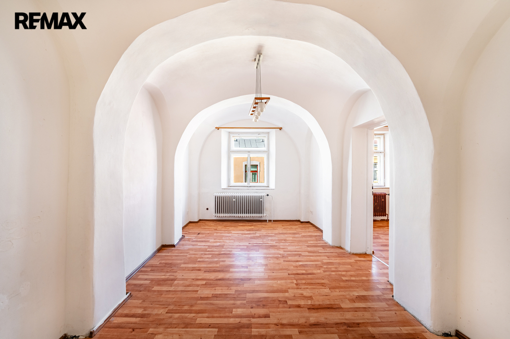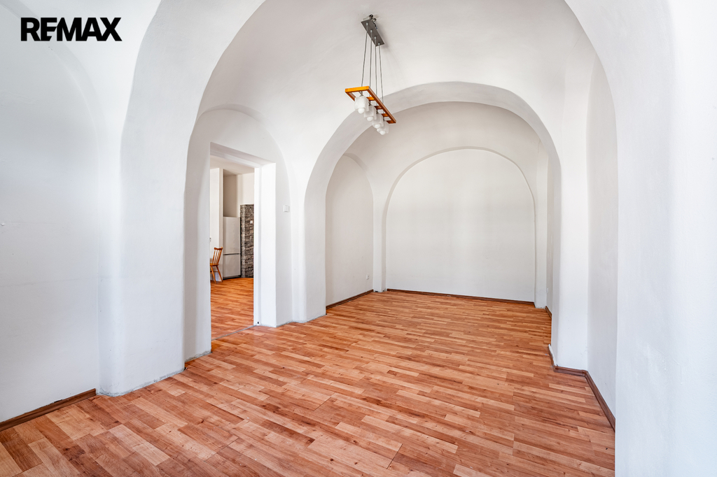 Interiér bytu působí prostorně a má osobitý charakter, který je dán kombinací vysokých stropů, klenutých stěn a výrazných designových prvků v kuchyni a koupelně. Byt nepůsobí tuctově a nabízí příjemnou atmosféru městského bydlení s možností dalšího doladění dle vlastních představ.