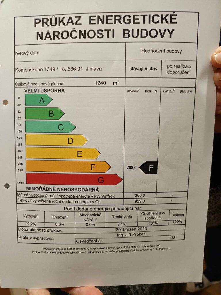 - Energetická náročnost budovy: F - Velmi nehospodárná