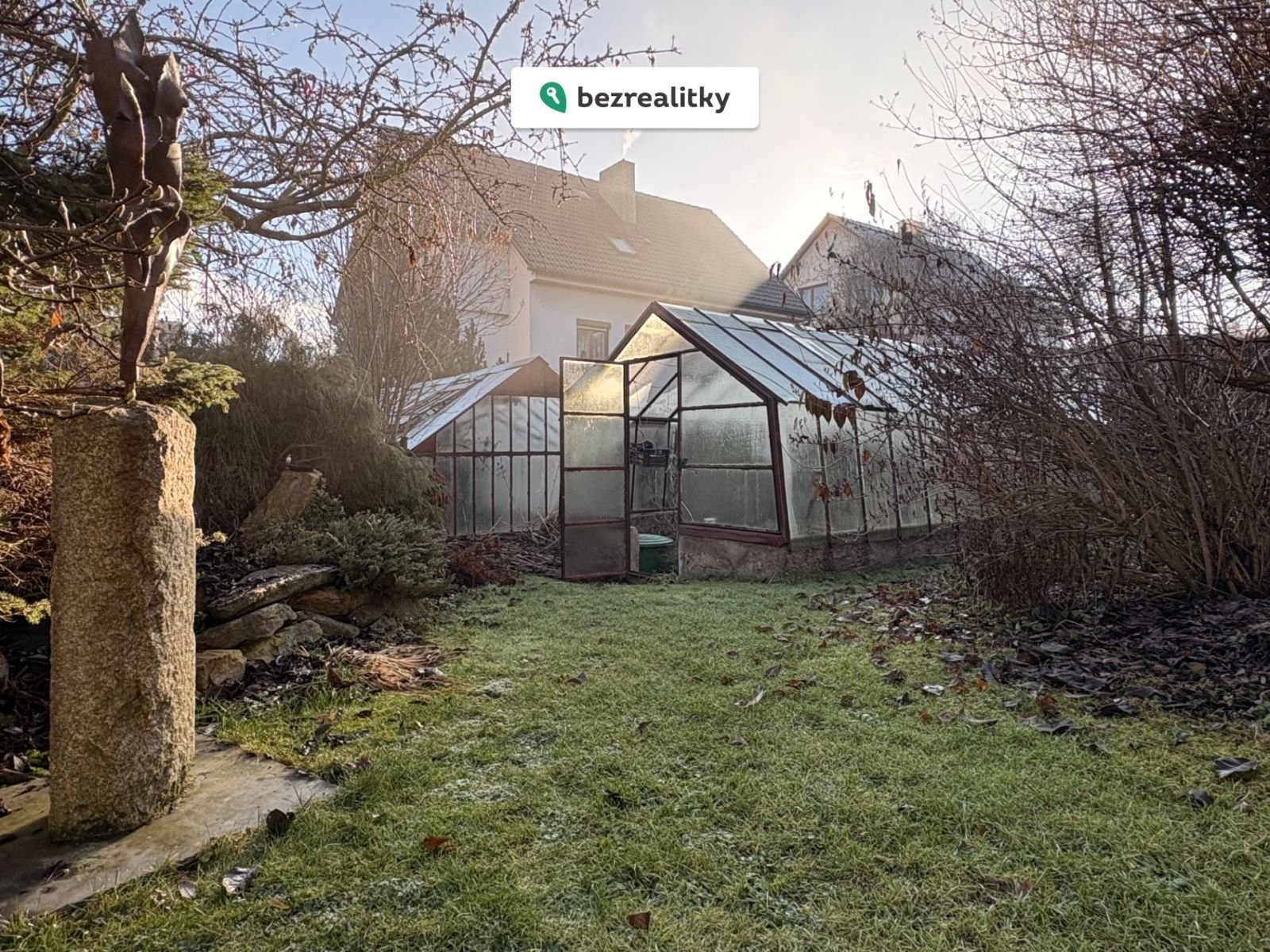 Na zahradě je skleník a podzemní sklípek o rozměrech 8m2, již zmíněný venkovní krb, vzrostlé keře a stromy, živý plot, prostě hotová zahrada.