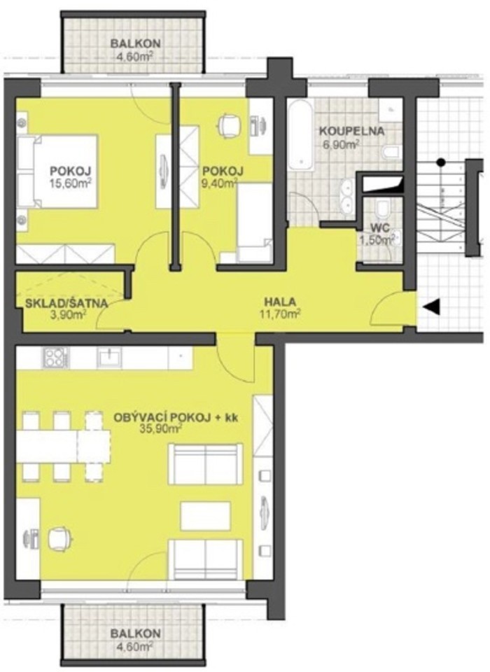 - Dispozice bytu: 3+kk