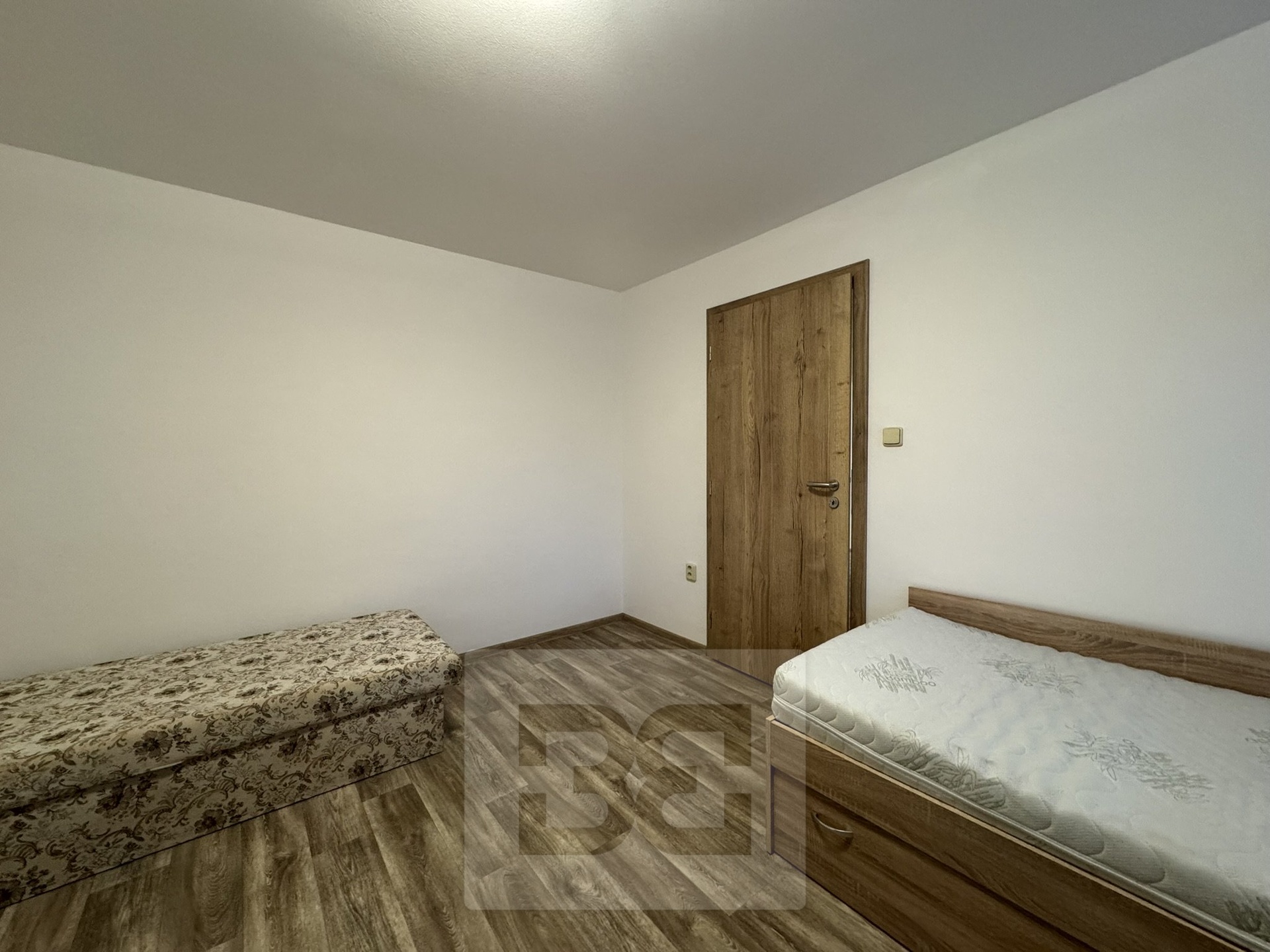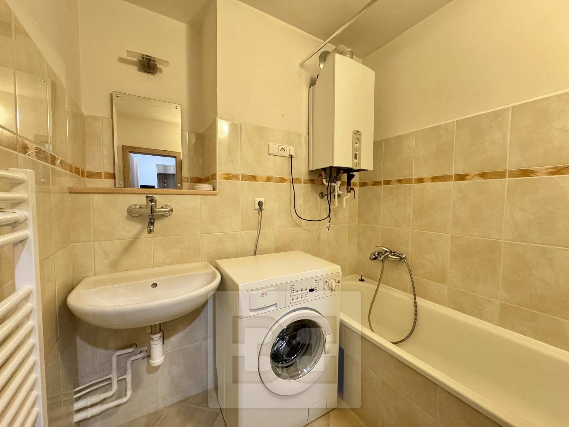 Dispozice bytu zahrnuje prostornou předsíň s dostatkem úložného prostoru, samostatné WC, koupelnu s vanou a plně vybavenou kuchyni se všemi spotřebiči včetně myčky nádobí. Obývací pokoj je prostorný a plně zařízený, ložnice je aktuálně připravena pro dva jednotlivce, nicméně vybavení lze upravit dle potřeb nájemce.