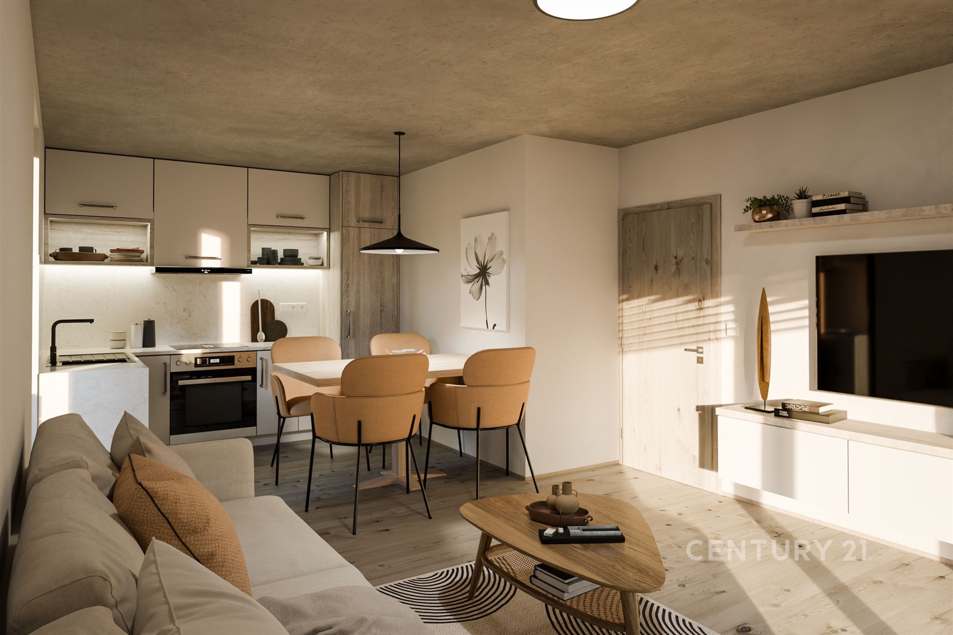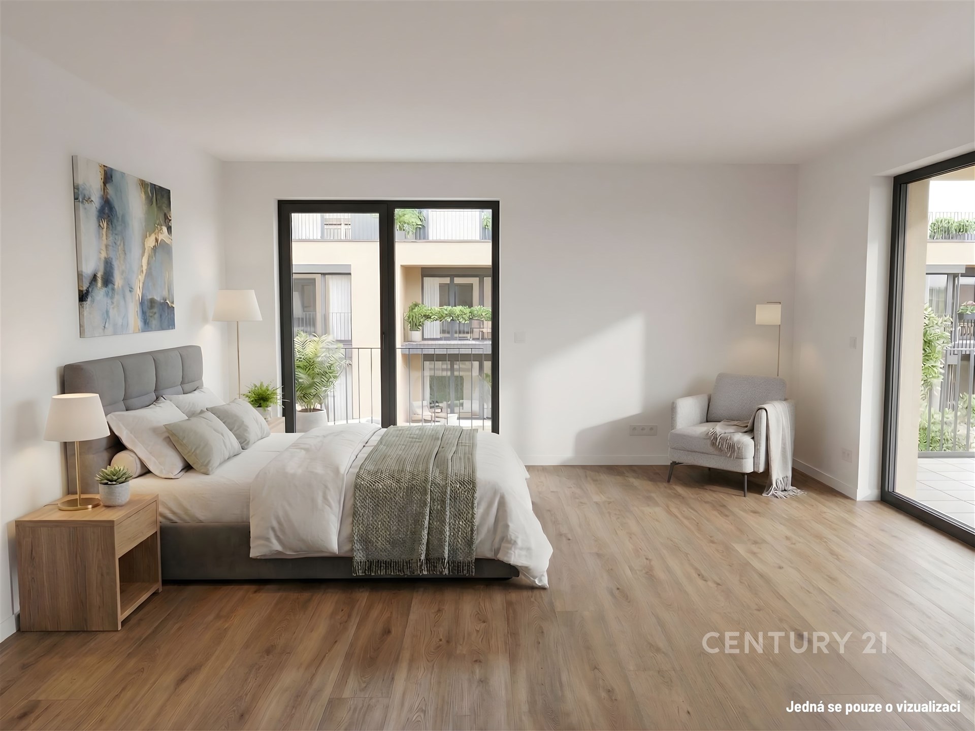 Dispozice bytu je promyšlená a pohodlná, jelikož obytný pokoj s kuchyňským koutem navazuje přímo na jednu z teras, stejně jako ložnice, což zajišťuje maximální komfort pro každodenní život. Součástí bytu je také sklepní kóje 6,1 m², kam snadno uložíte věci, které nepotřebujete mít po ruce. Komfort bydlení zvyšují elektrické zatemňovací žaluzie a podlahové topení.