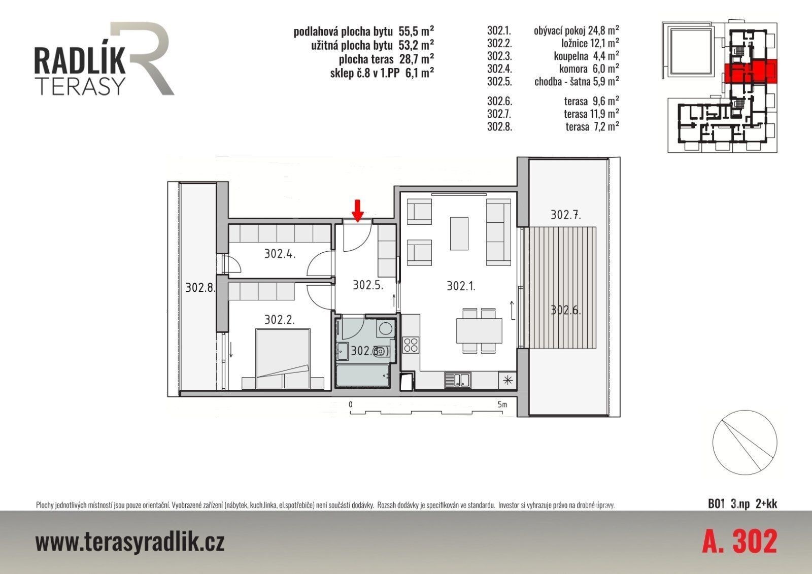 | Dispozice/podlahová plocha: | 2+kk/55 m² |