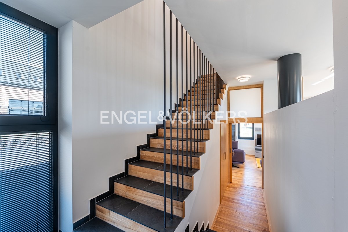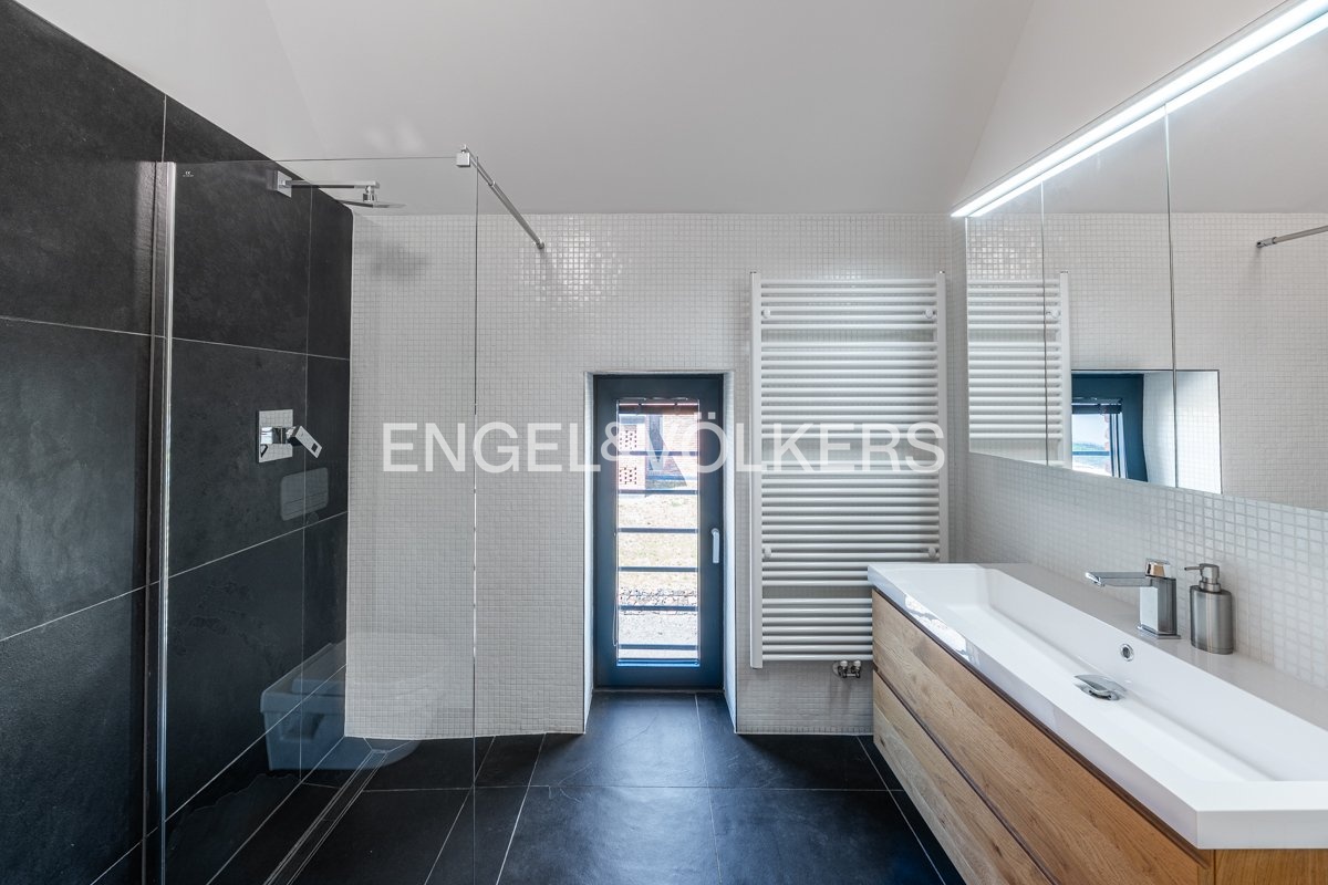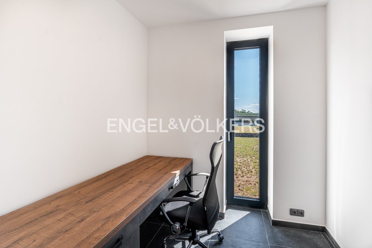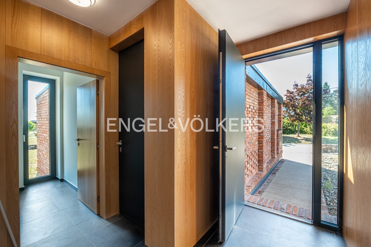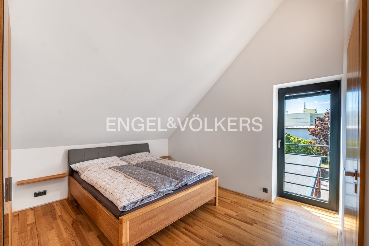 Dům je kompletně zařízen kvalitním nábytkem a proveden ve velmi vysokém standardu: podlahy z jasanu a přírodní břidlice, hliníková okna s trojskly, předokenní žaluzie, klimatizace, tepelné čerpadlo, teplovzdušný krb, sanita Villeroy & Boch a kuchyňské spotřebiče Miele. Nájemníkům jsou k dispozici dvě parkovací místa v garáži.