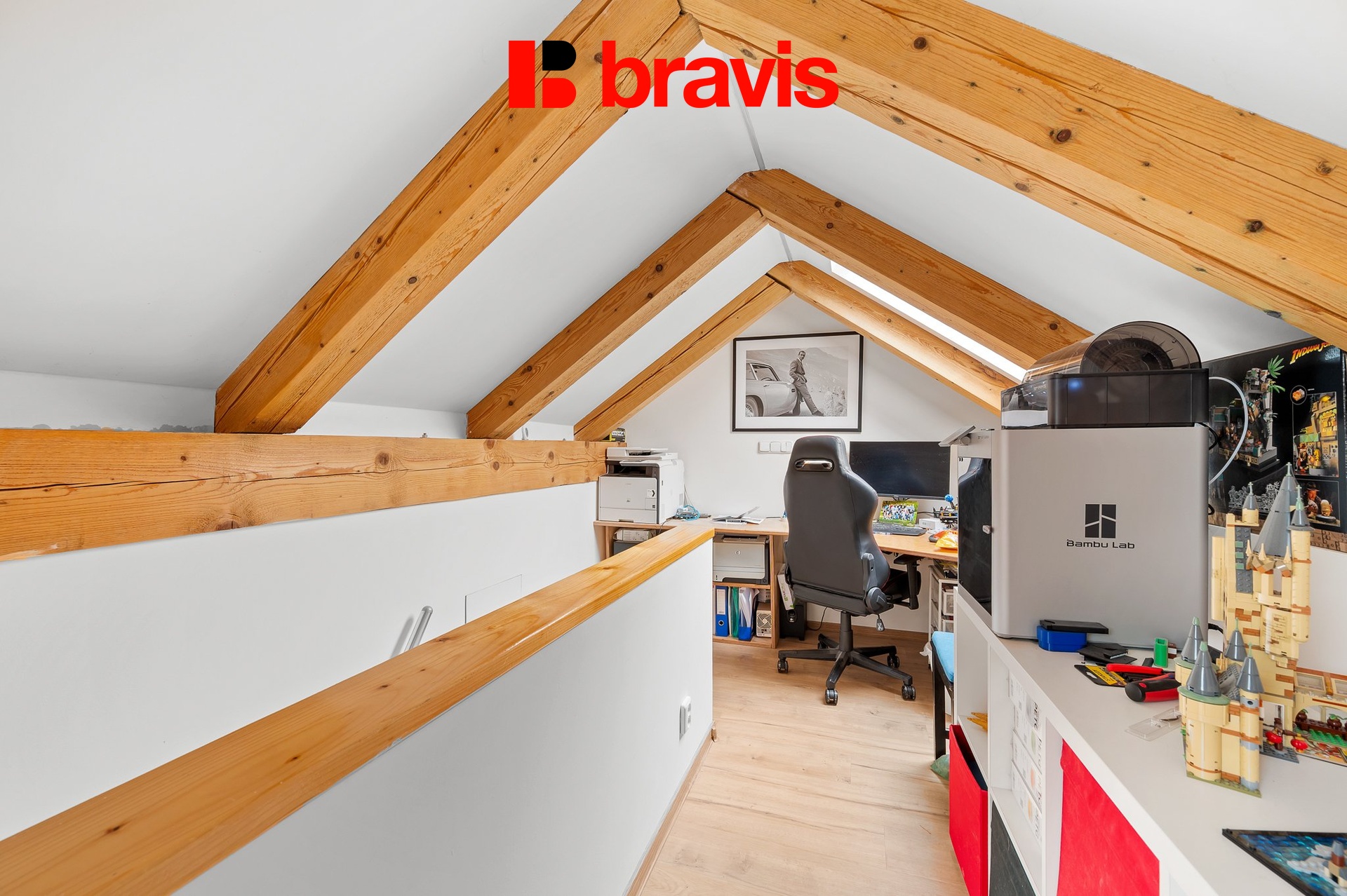 V horním patře bytu je pokoj o velikosti (20 m²), který může sloužit jako ložnice, pracovna či dětský pokoj.