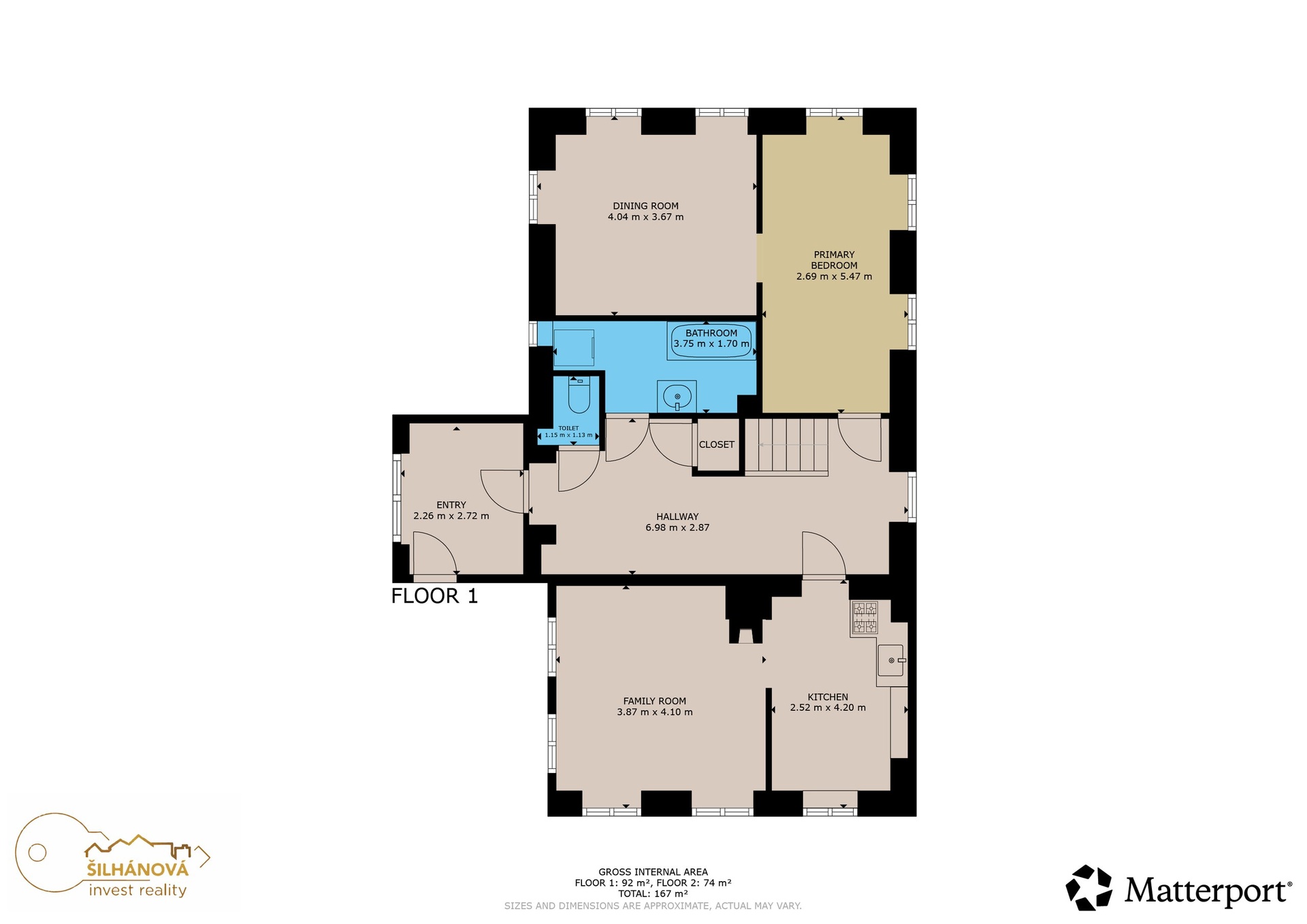 Dům disponuje užitnou plochou 167 m² a je v současnosti řešen jako dvě bytové jednotky – 3+1 a 3+kk (2+1). Díky tomu je ideální nejen pro početnější rodinu, ale také pro vícegenerační bydlení nebo kombinaci bydlení a pronájmu.