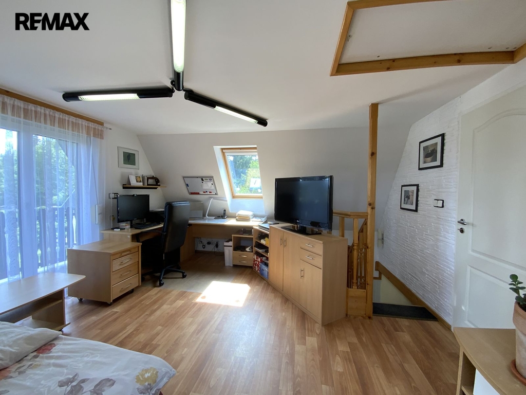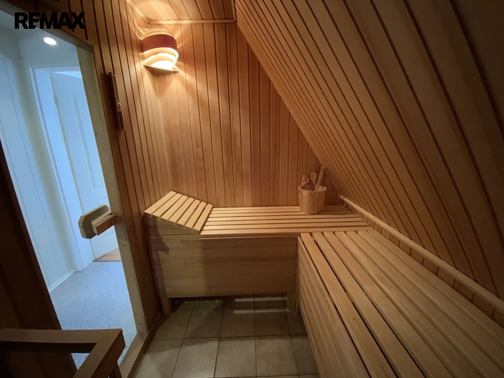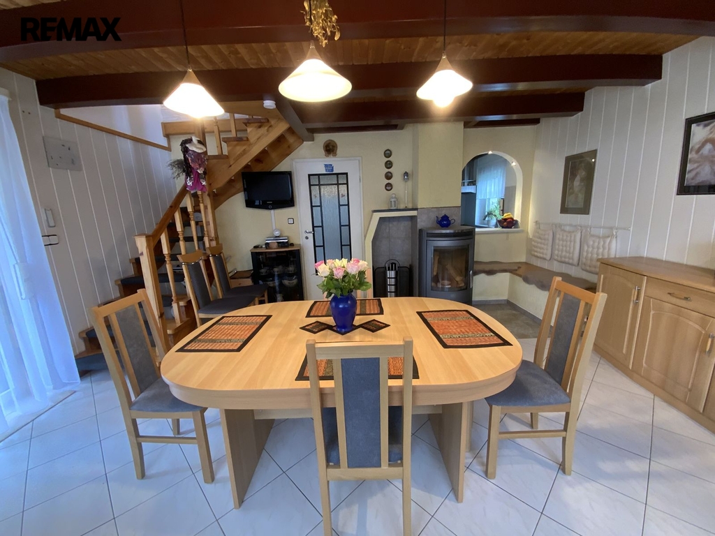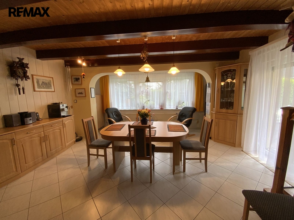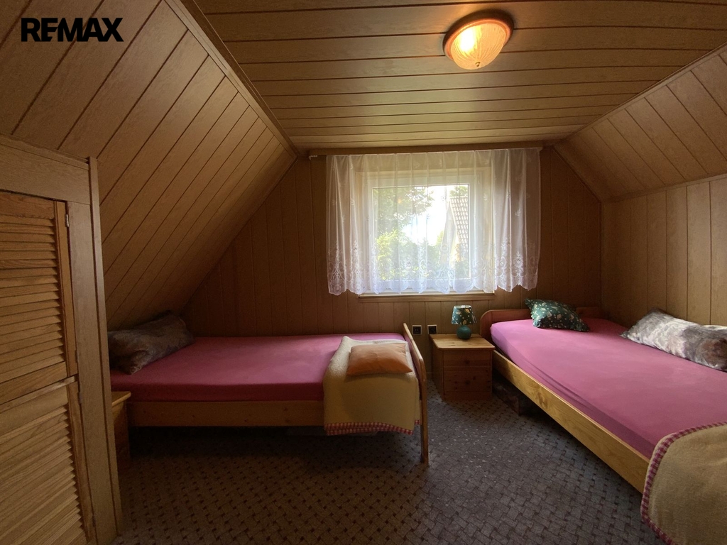V přízemí rodinného domu se nachází kuchyň, obývací pokoj s jídelnou a krbovými kamny k dennímu životu, ložnice, velká koupelna a chodba. V patře domu je veliký obývací pokoj s kuchyňským koutem sloužící k večernímu životu s extra schodištěm do ložnice, pokoj-pracovna s balkonem, koupelna se sprchovým koutem, sauna a chodba. Z obývacího pokoje v přízemí je vstup na krásnou terasu s markýzou. Na dům navazuje i garáž.