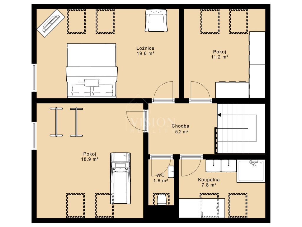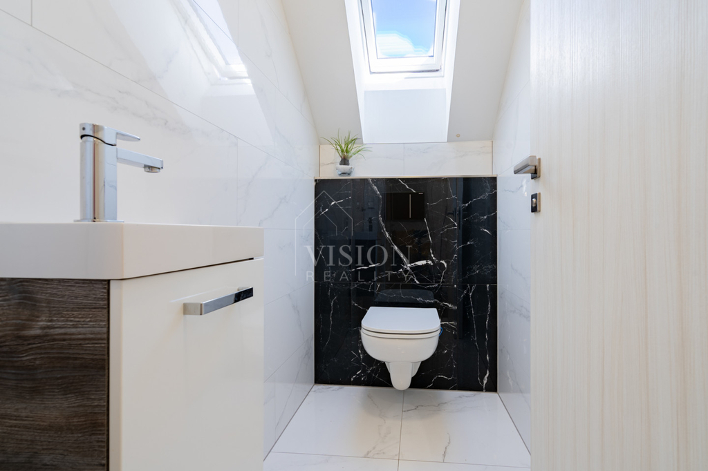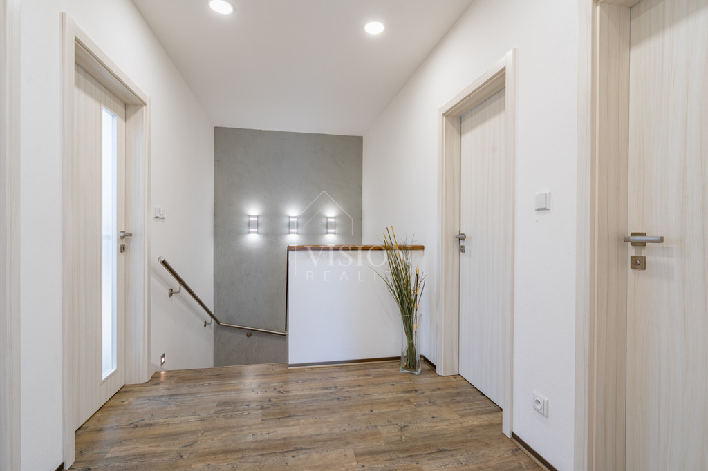 Ve 2. NP jsou tři prostorné pokoje, přičemž jeden z nich slouží jako šatna, dále koupelna a samostatné WC.