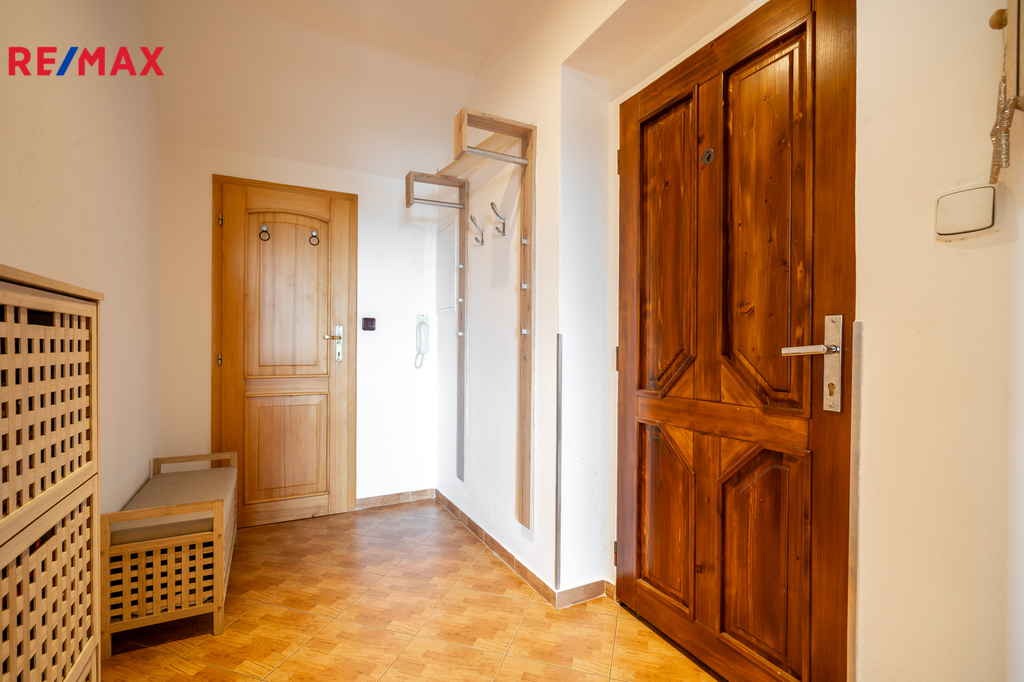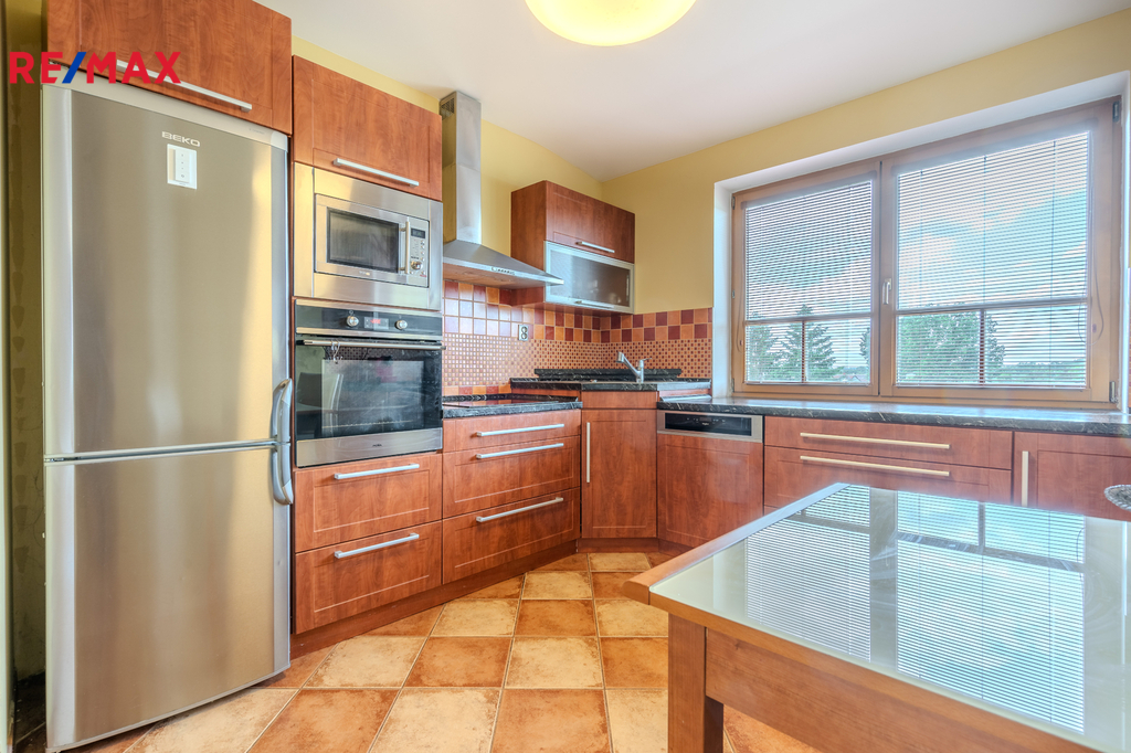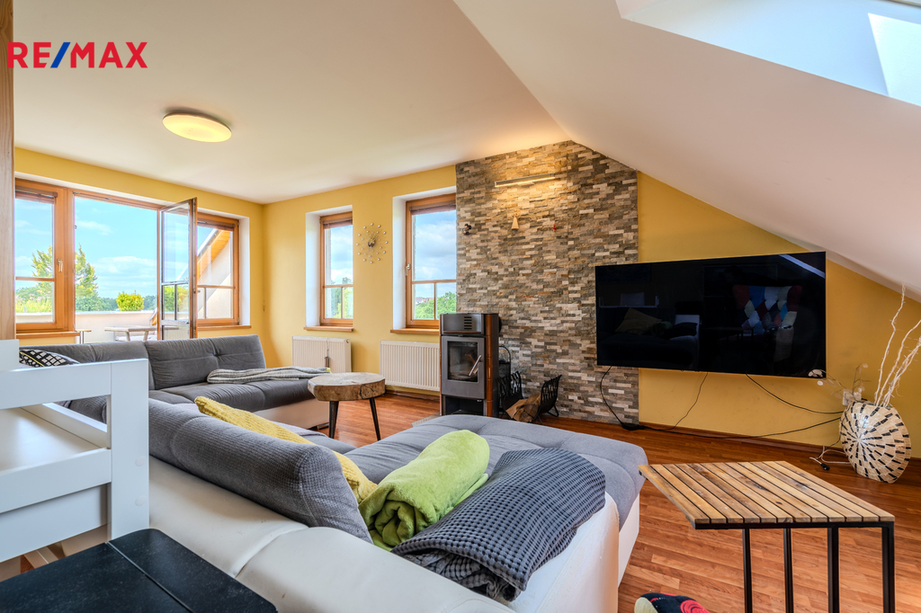 Byt 5+1 s terasou, 145m2 celkové užitné plochy, byl vybudován v nástavbě cihlového nízkopodlažního domu v roce 2005 a doladěn se všemi úpravami v roce 2010, kdy byl plně rekonstruován do nynější podoby. Nejen, že je prostorově nadstandardní nemovitostí, ale standard bydlení lze srovnat s bydlením v rodinném domě.