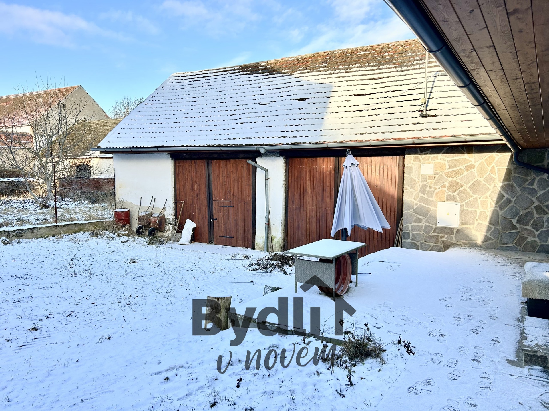 2× stodola, kdy v jedné je technická místnost, druhá slouží jako sklad na dřevo