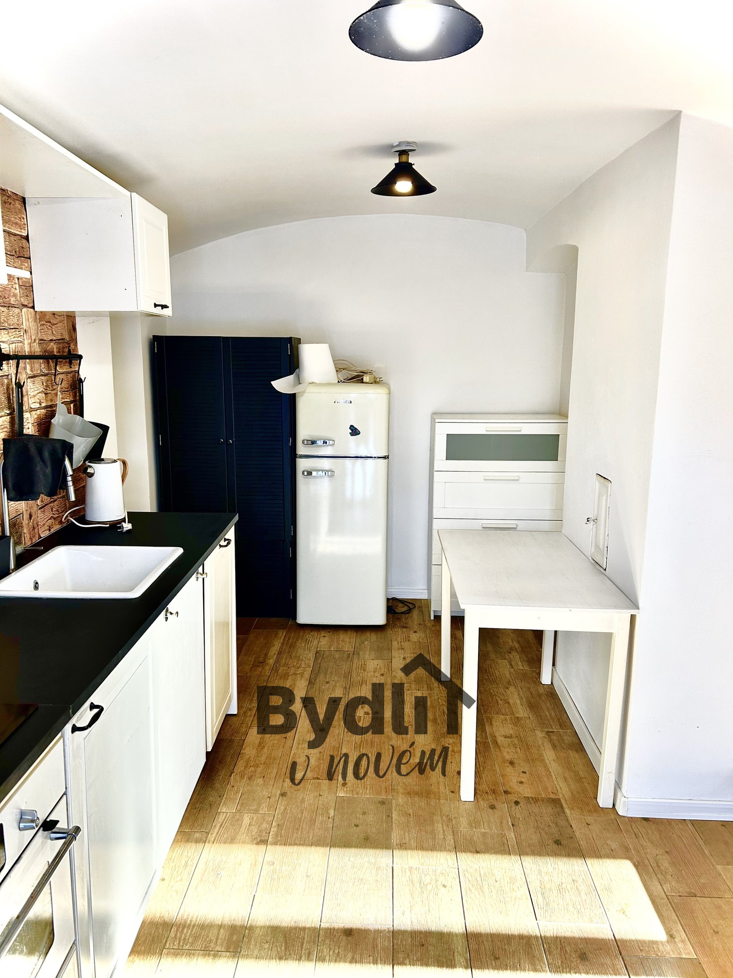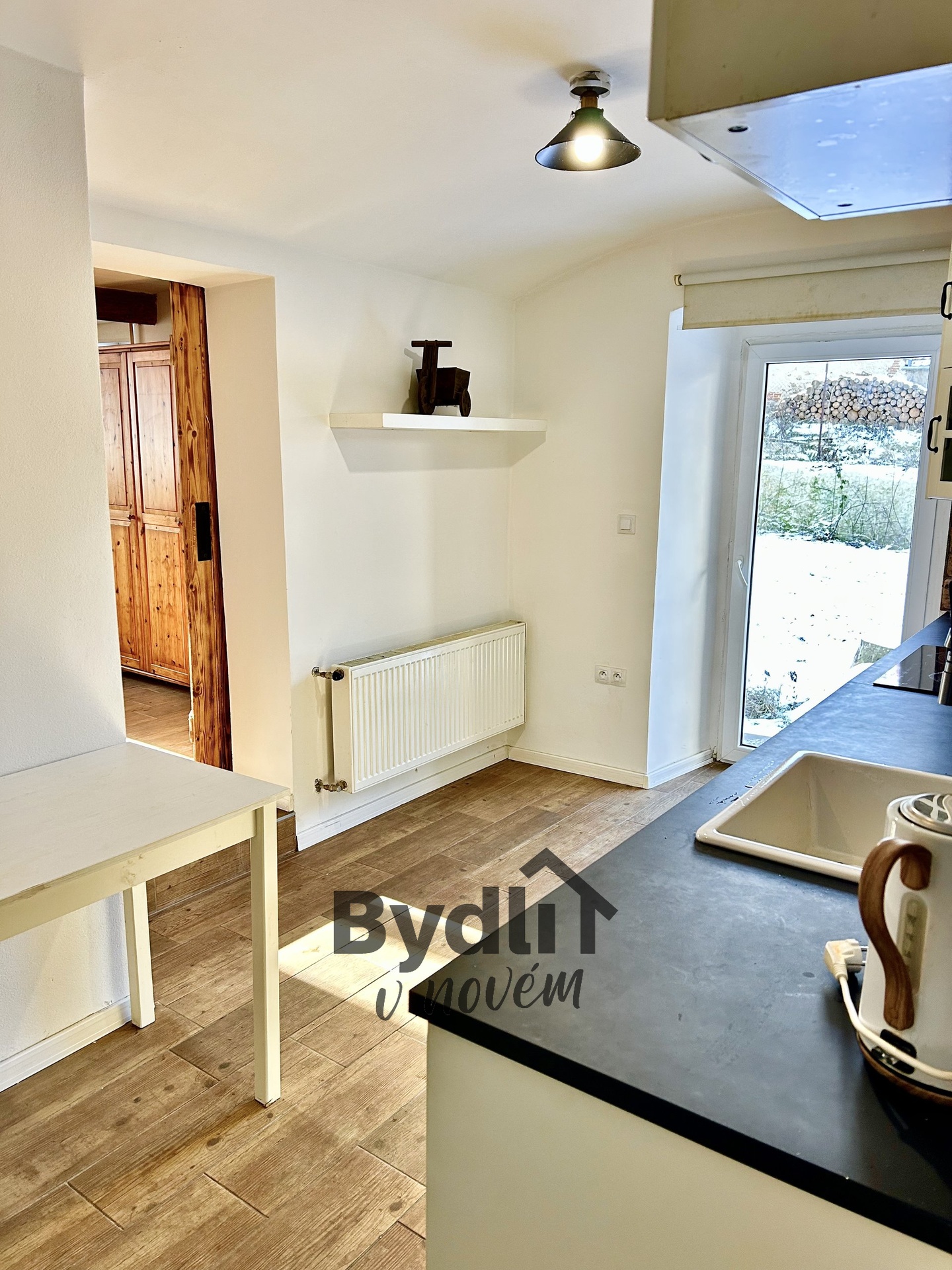 Dispozice 2+1 nabízí útulné a funkční bydlení. Kuchyně má přímý vstup na terasu orientovanou do zahrady, což vytváří příjemné propojení vnitřního a venkovního prostoru. Koupelna je vybavena sprchovým koutem a klasickou toaletou. Interiér doplňují stylové staromódní prvky, které dodávají prostoru osobitý vzhled.