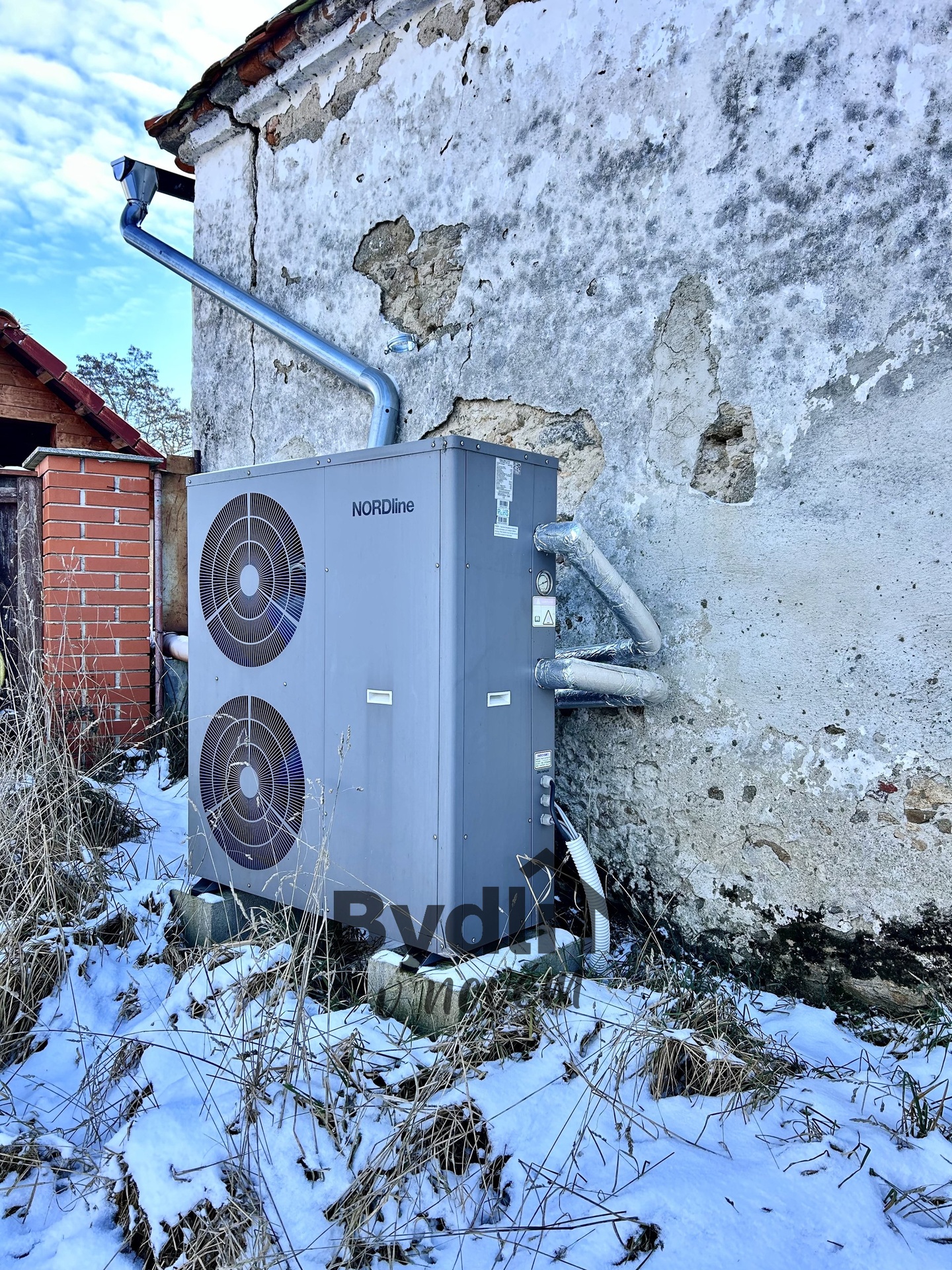 Vytápění i ohřev teplé vody zajišťuje tepelné čerpadlo NORDline (vzduch-voda), což výrazně snižuje provozní náklady. Dům je napojen na obecní vodovod, zároveň má k dispozici dvě vlastní studny. Kanalizace je řešena jímkou.