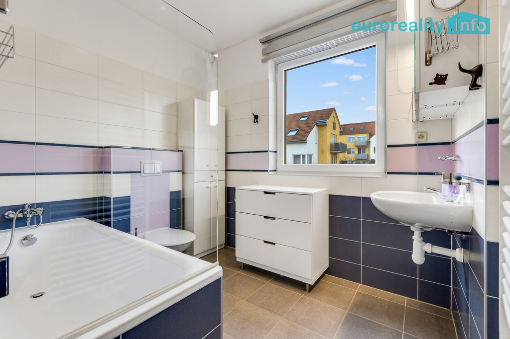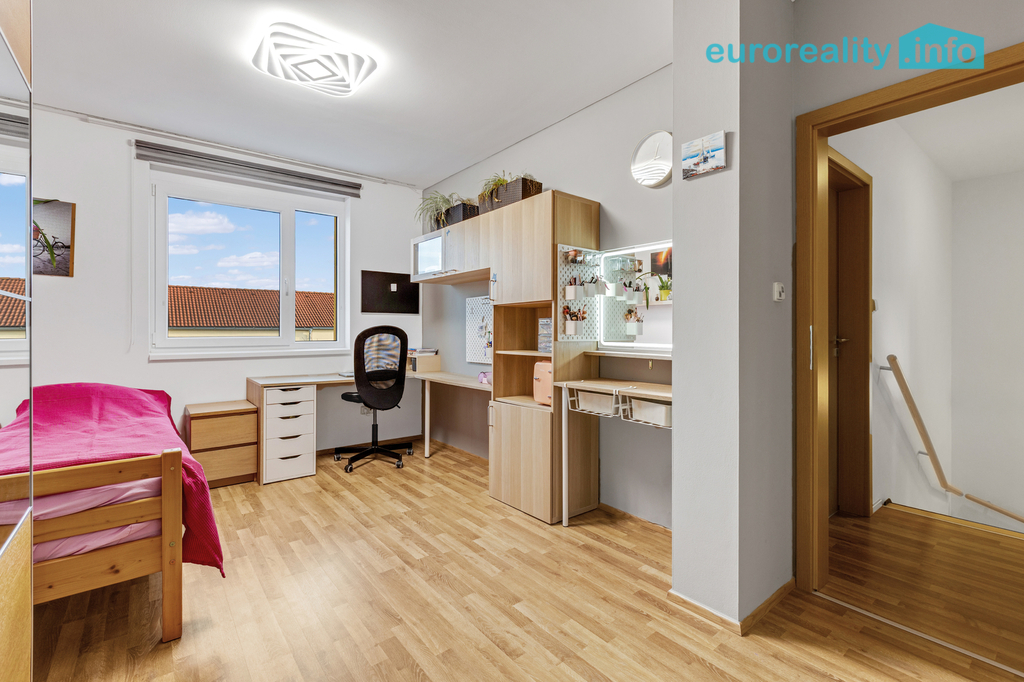 Patro: tři pokoje (pro děti, rodiče nebo domácí kancelář) a koupelna s vanou – protože někdy prostě potřebujete relax ve vaně místo rychlé sprchy a druhá toaleta.
