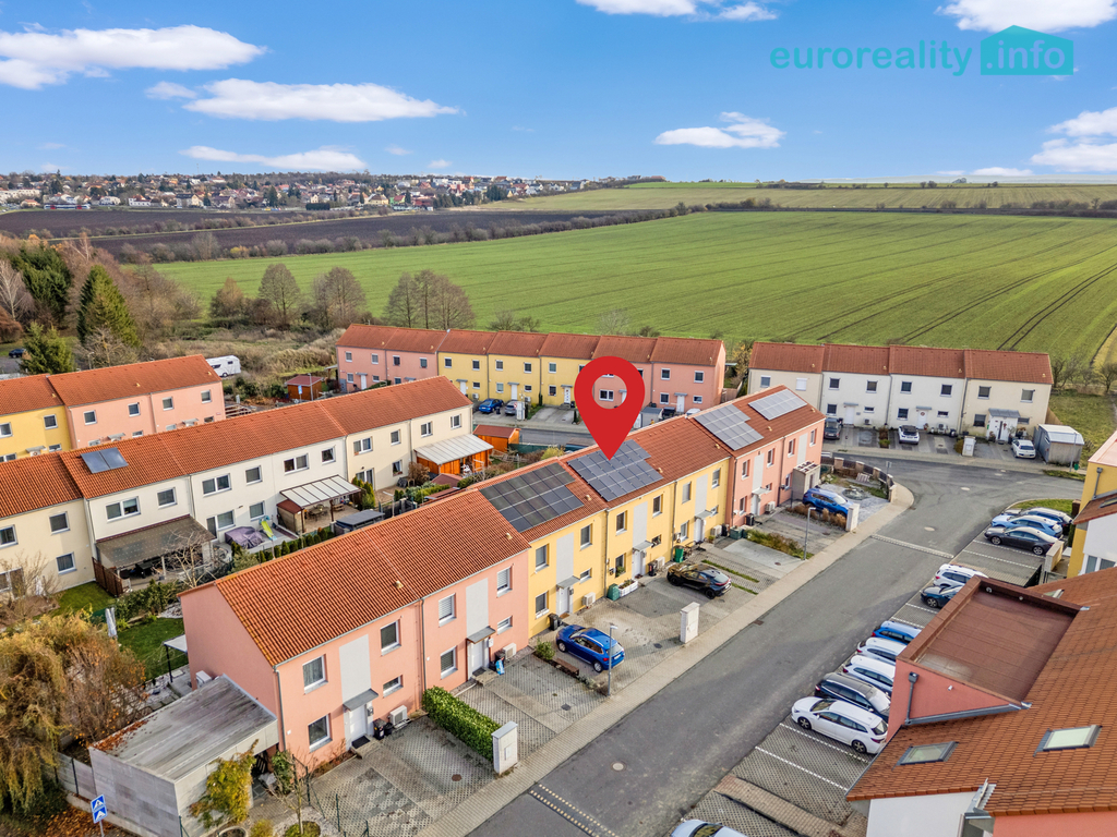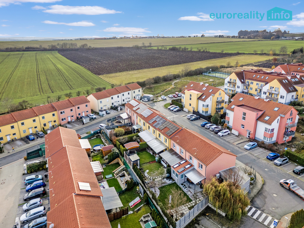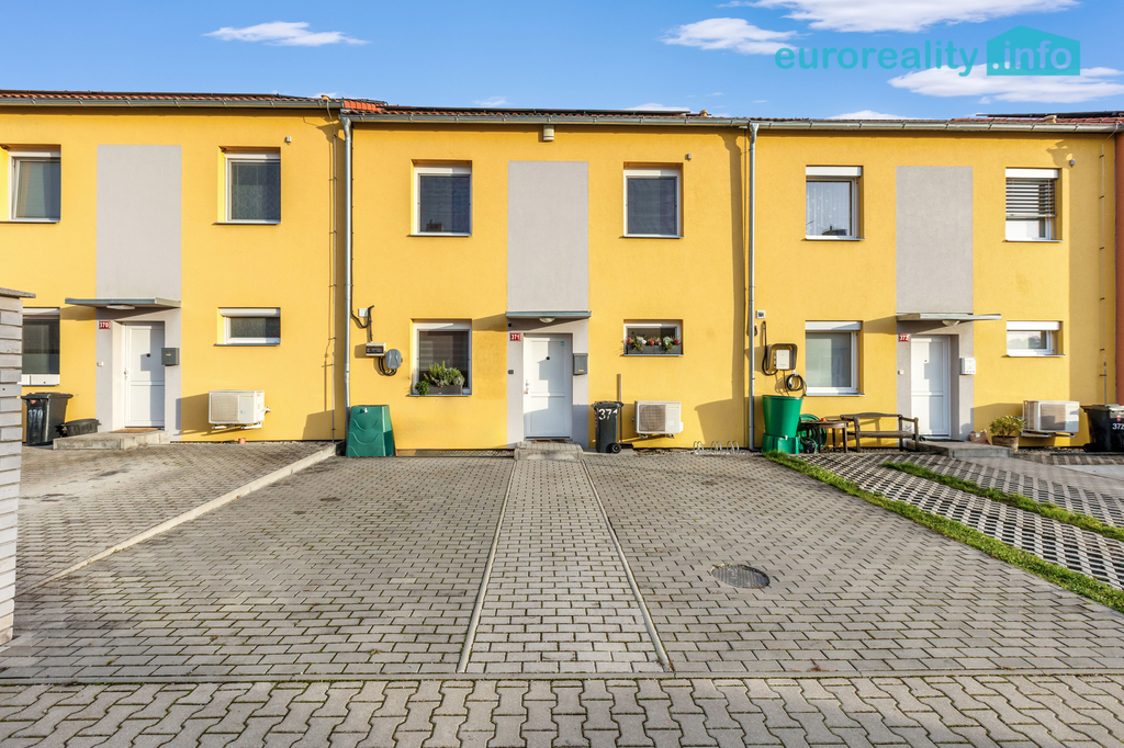 Exteriér: vlastní pozemek 52 m2 před domem, dvě parkovací stání pro větší auta, místo pro tři motocykly a stojan na kola. A ještě zahradní domek (8,75 m²), který zvládne být úložným prostorem i malou dílnou.