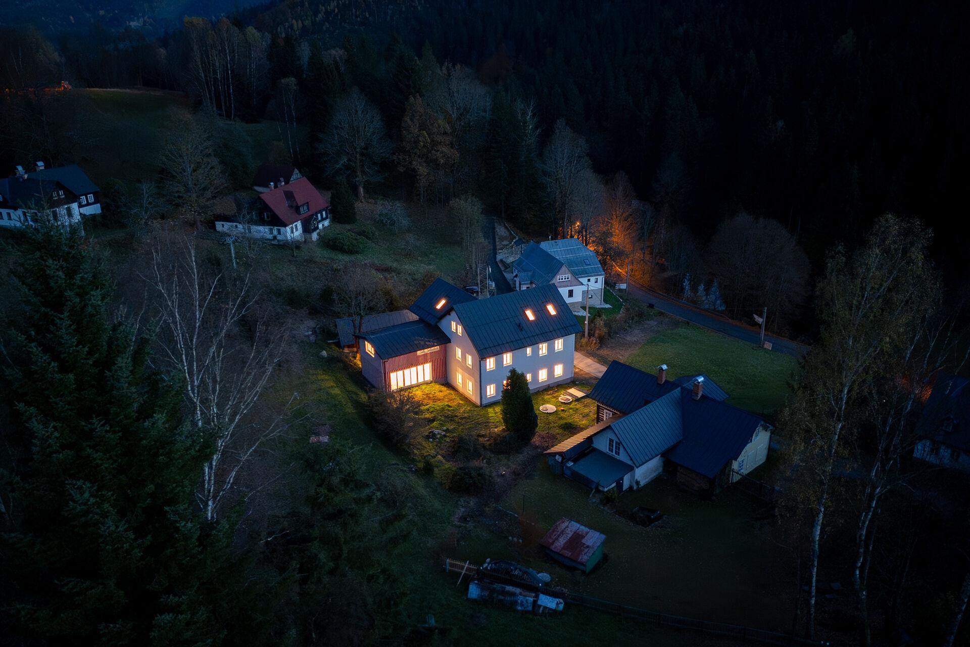 Jednotka se nachází v podkroví kompletně zrekonstruovaného horského domu v Antonínově. Rekonstrukce proběhla pod dohledem renomovaného architektonického studia, které zachovalo původní charakter domu a doplnilo jej o moderní standardy a komfort. Výjimečnost celého projektu potvrzuje také nominace apartmánového domu do prestižní soutěže Realitní projekt roku 2025.