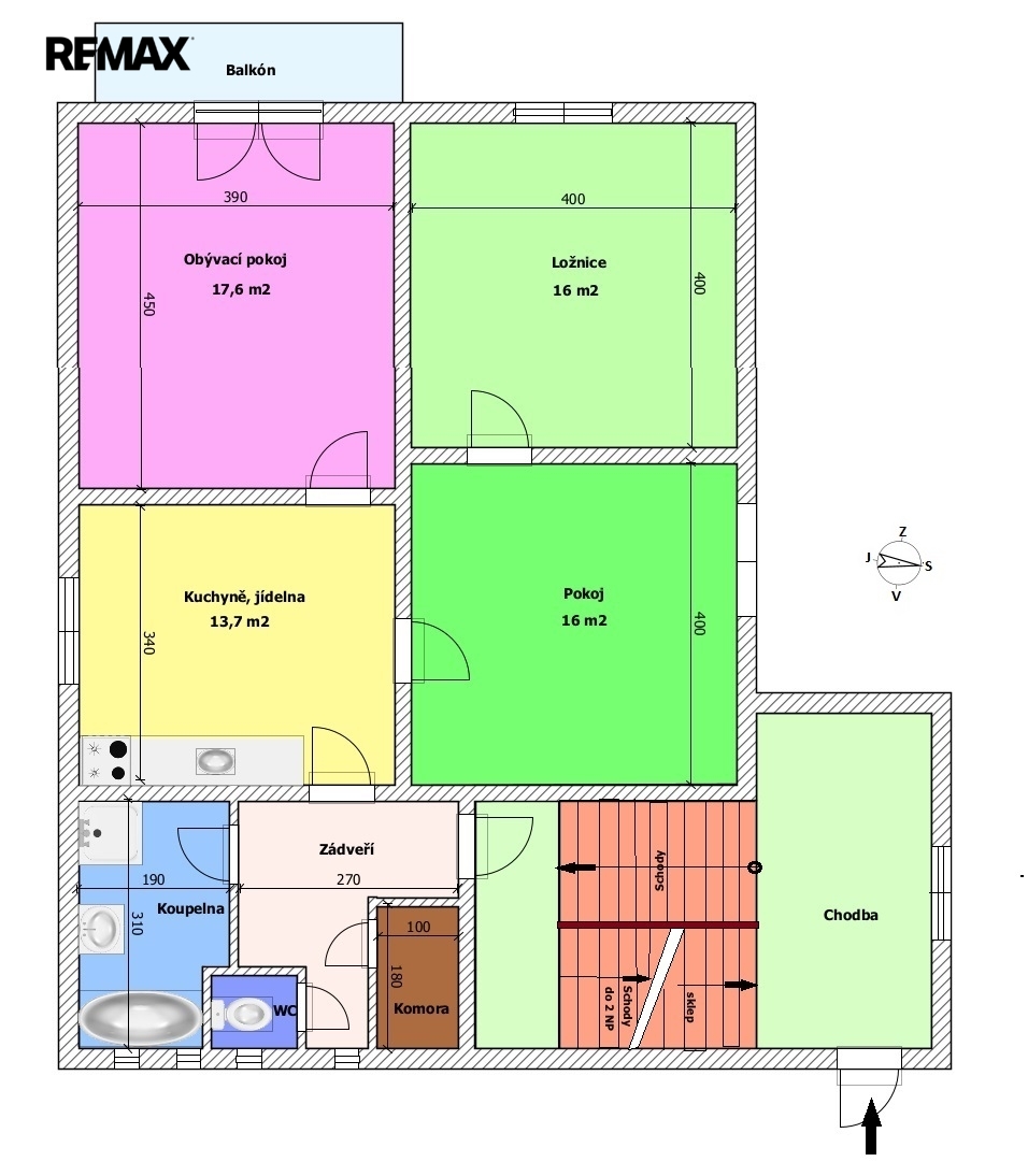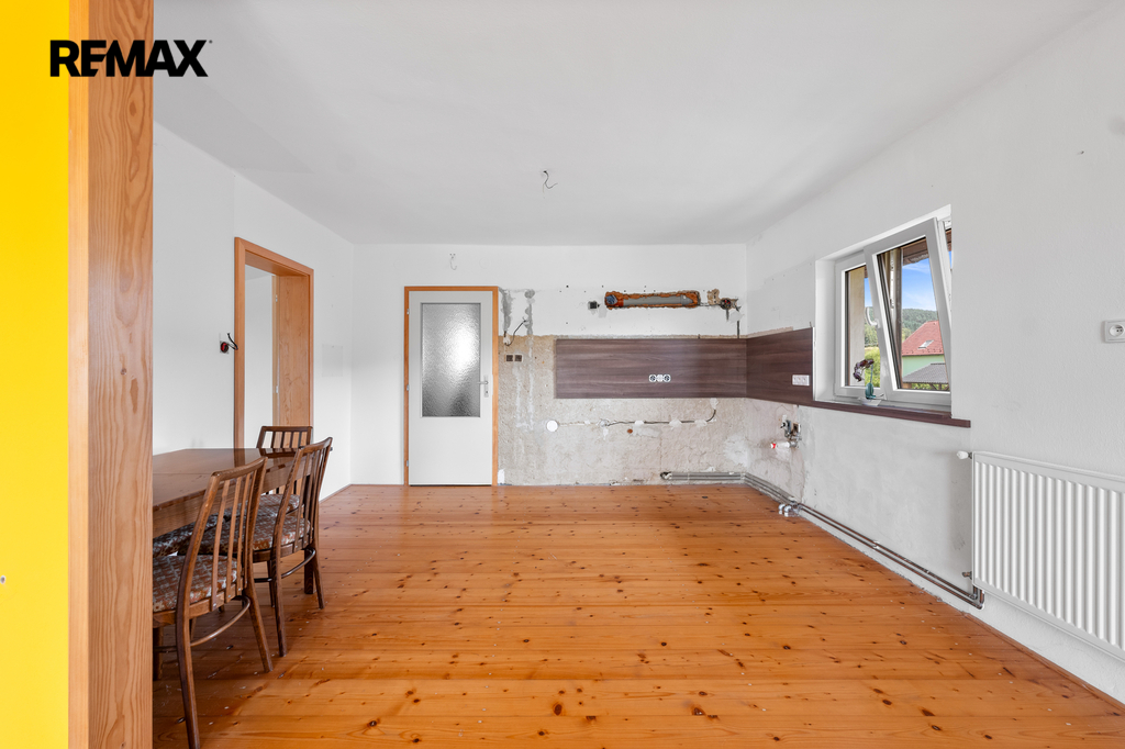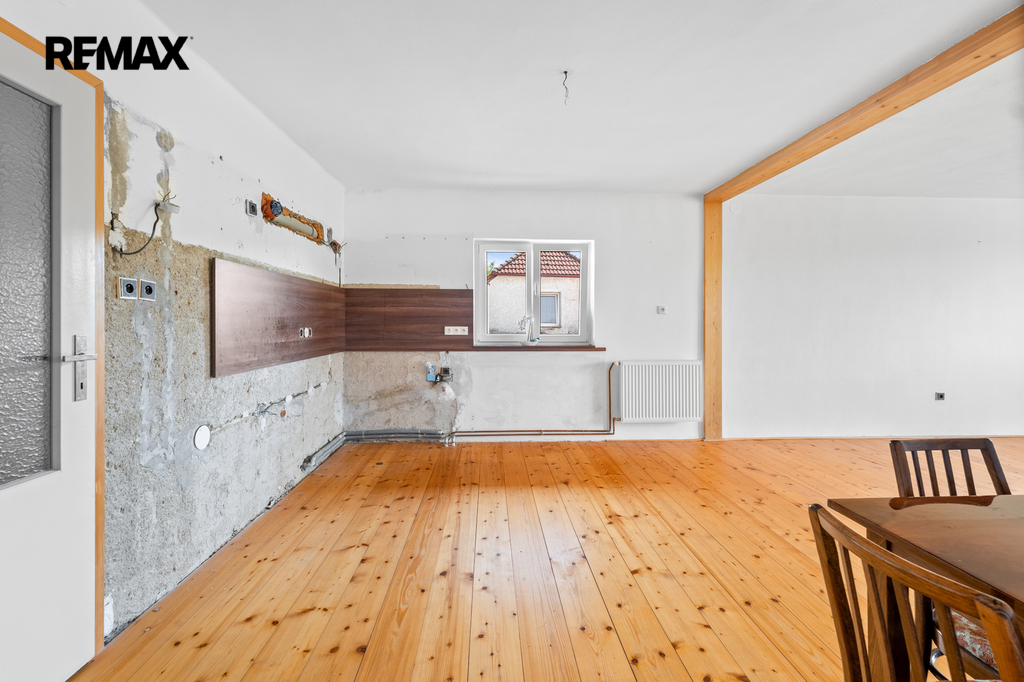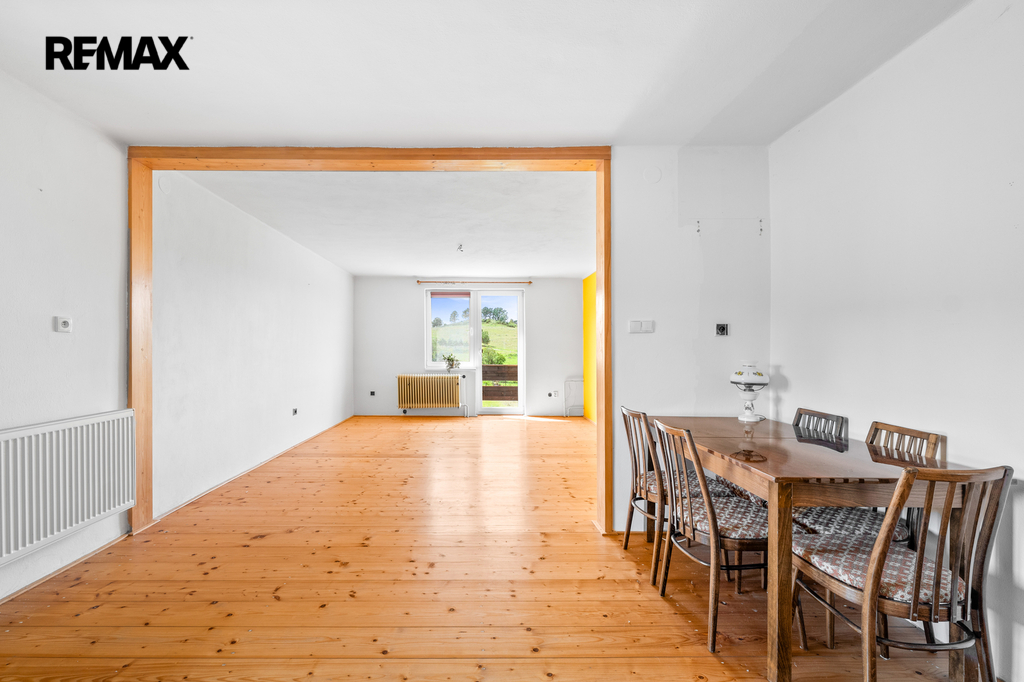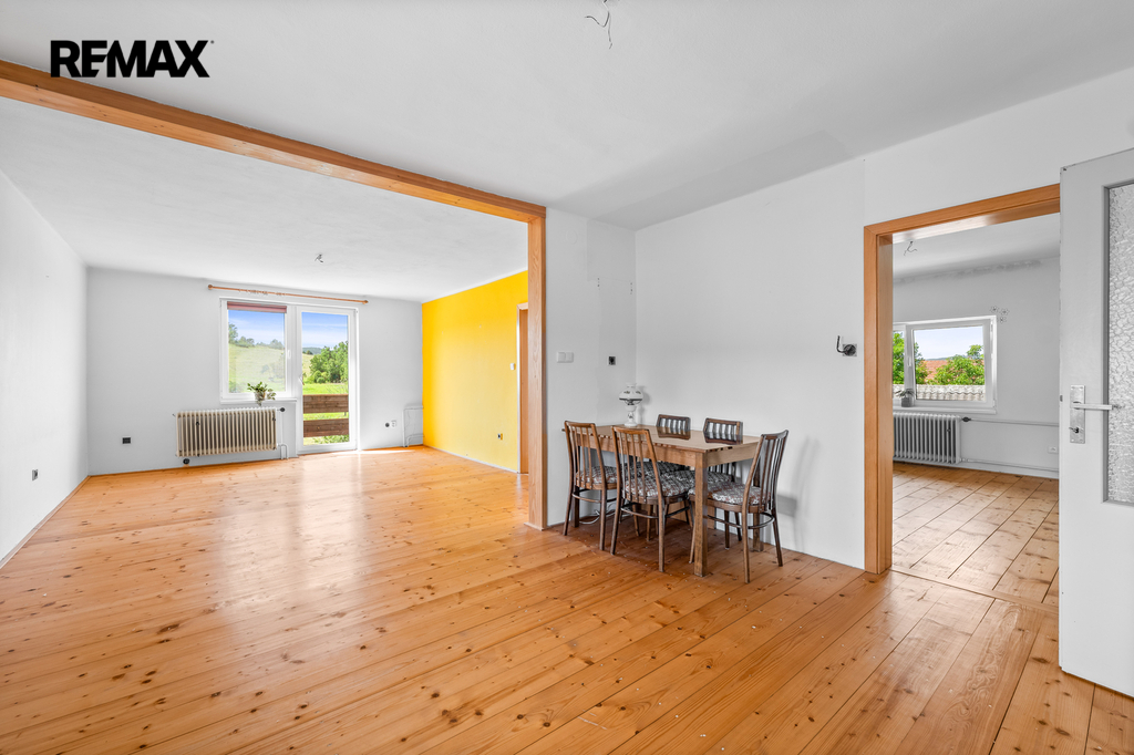 1. podlaží – dispozice 3+1, je částečně zařízený, vybavený kuchyňskou linkou, sprchovým koutem, vanou, samostatným wc, komorou a dalším nábytkem, tento byt je ihned obyvatelný