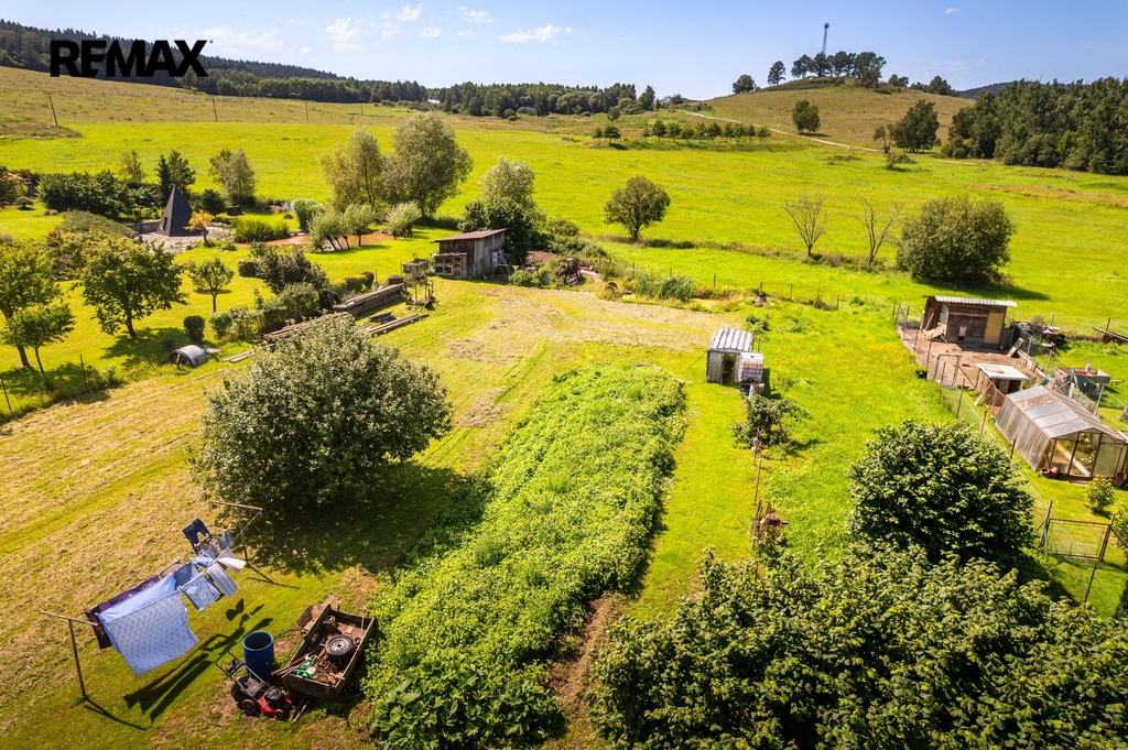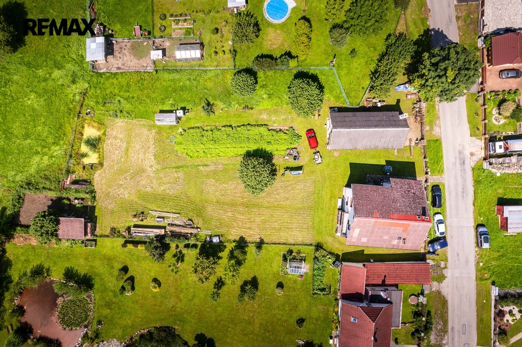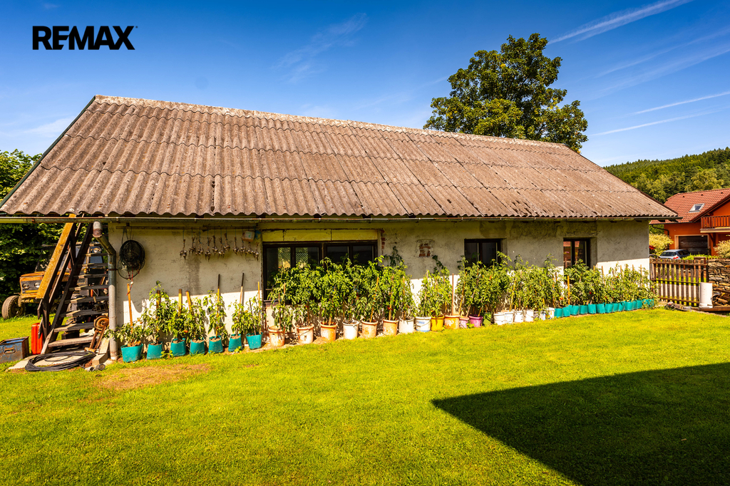 Dům stojí na vlastním rozlehlém pozemku o výměře 2015 m², který nabízí dostatek prostoru pro relaxaci, zahradničení, nebo dětského hraní. Na pozemku se nachází také velká zahradní budova, o rozloze 81 m2, kterou lze využít jako garáž, sklad nářadí, nebo jako dílnu.