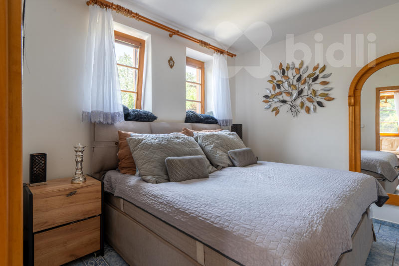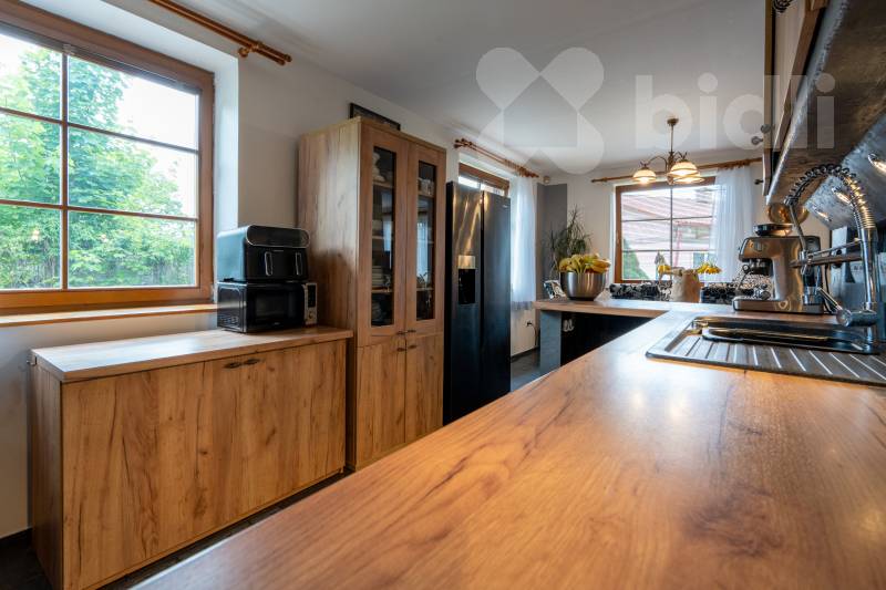 - Popis vybavení: Dům z roku 2001 uprostřed zeleně v údolí Kamenice Ládví. Obytná plocha je 186 m2, podlahová plocha je 314 mě. Zahrada 1.128 m2. chytrá domácnost hlídá bezpečné používání domu včetně úspory elektrické