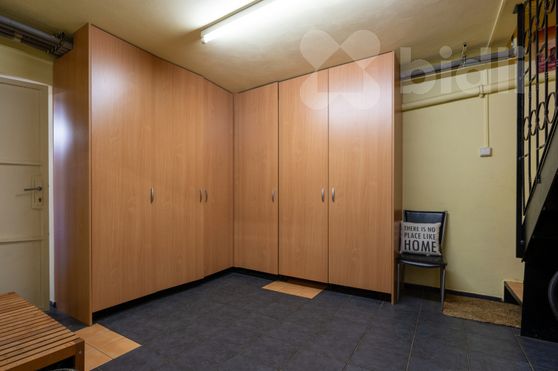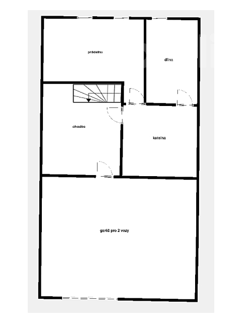 V suterénu domu se nachází prostorný sklep, technická místnost, prádelna se sušárnou a garáž pro dvě auta.