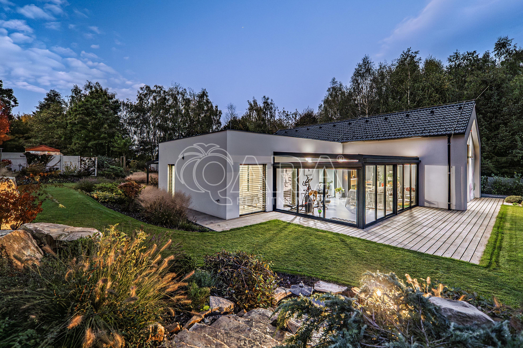 Dispozičně je dům řešen jako 3+kk, rozšířený o celoročně obyvatelnou zimní zahradu, která vytváří komfortní uživatelské 4+kk.