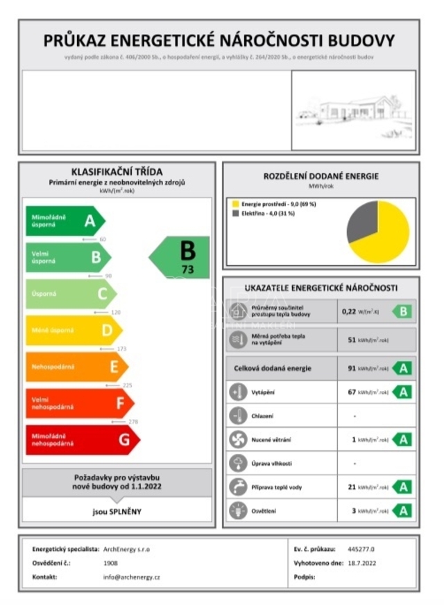 - Energetická náročnost budovy: B - Velmi úsporná