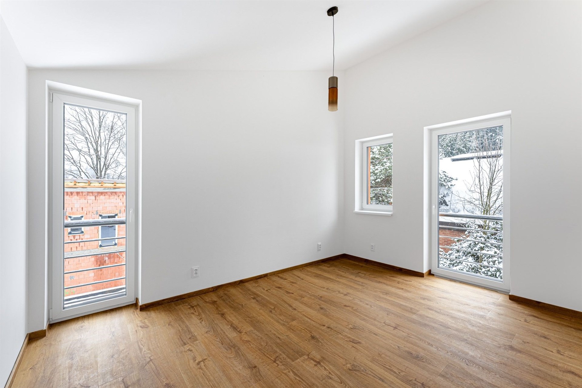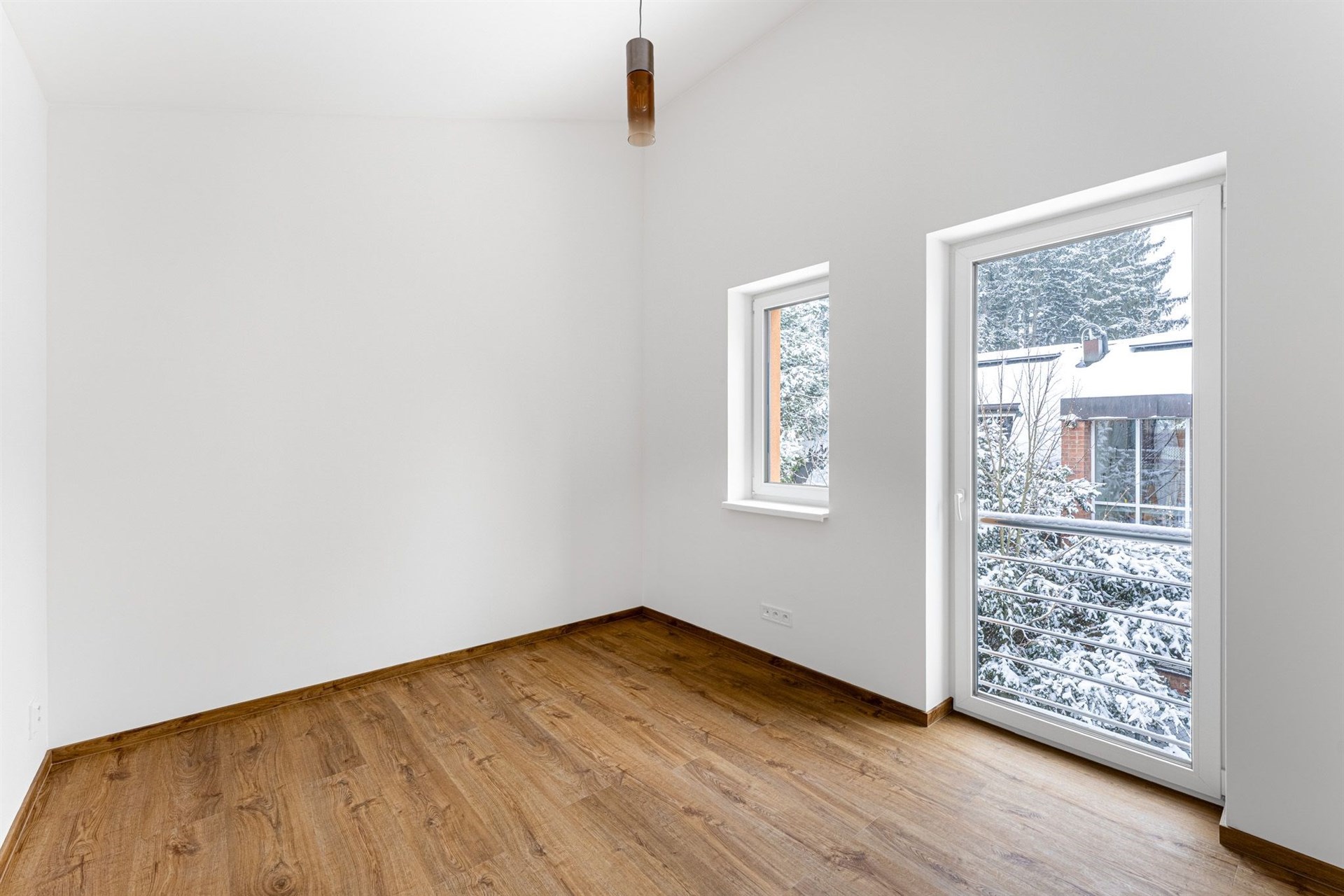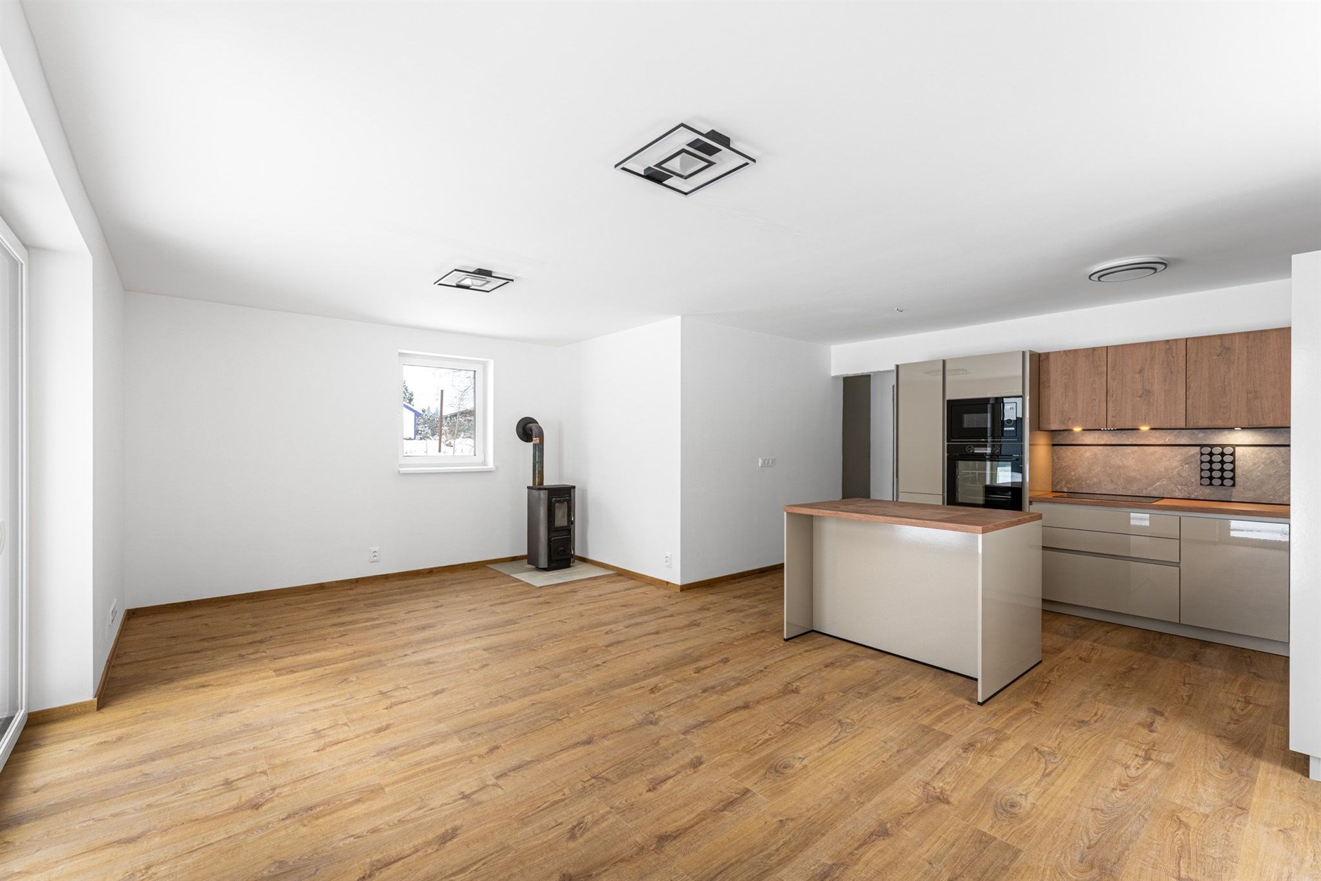 Podlahy pokryté kvalitním vinylem a dlažbou, okna s trojskly pro skvělou tepelnou a zvukovou izolaci.