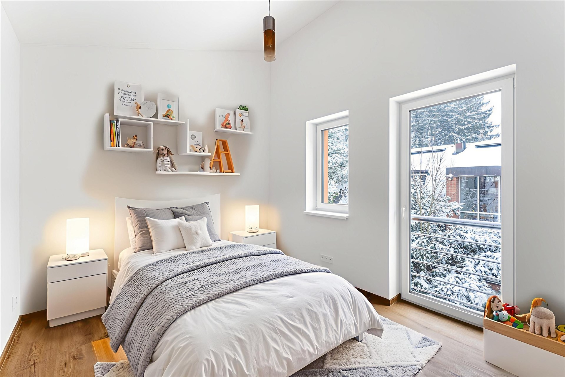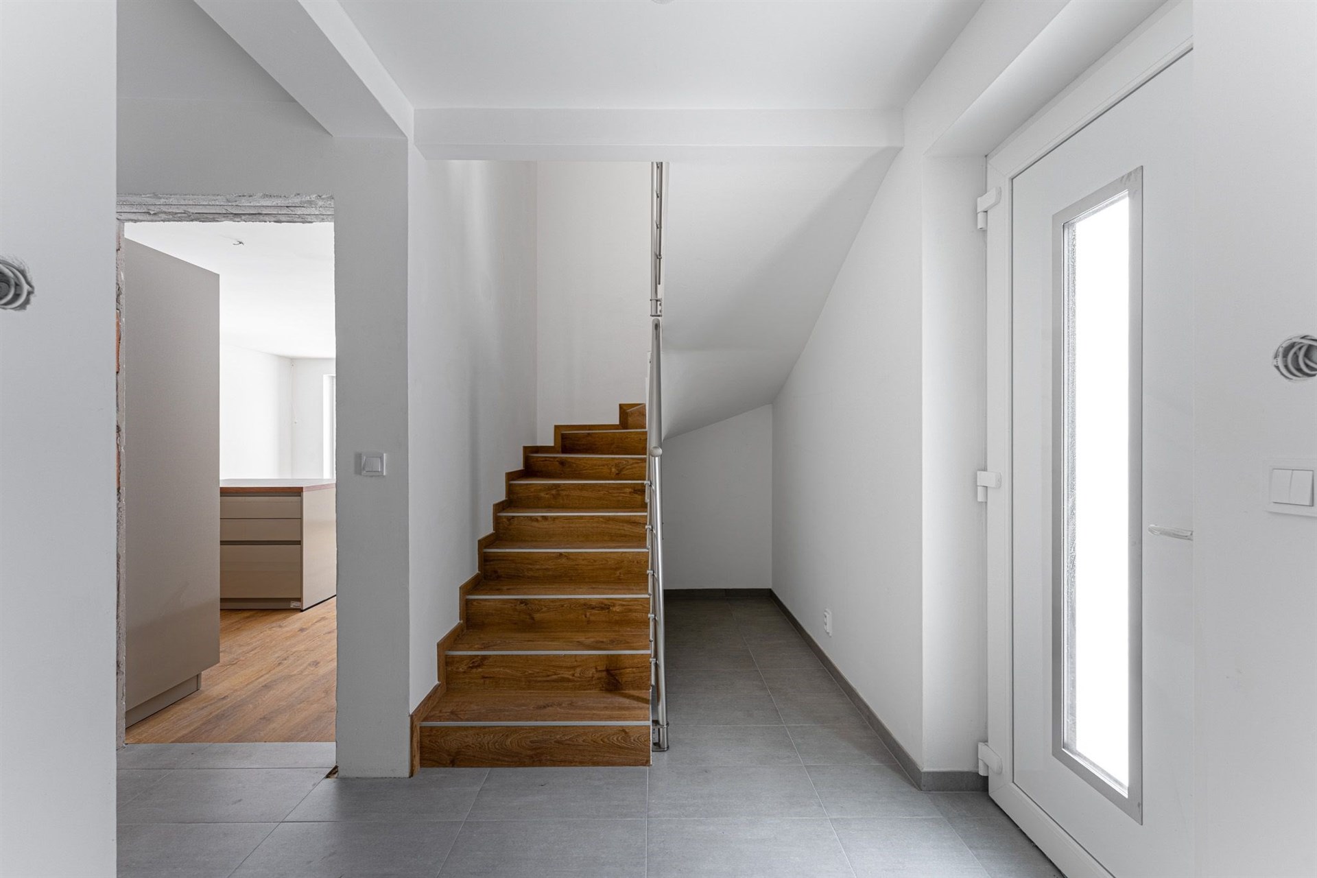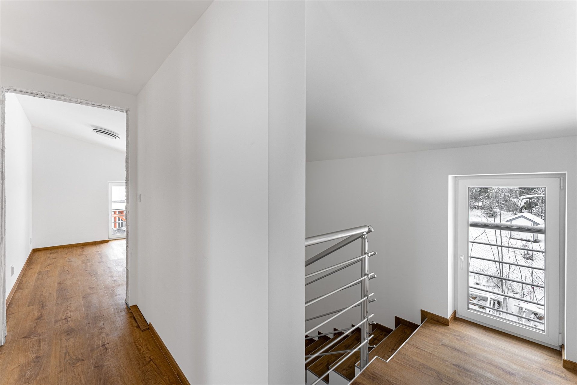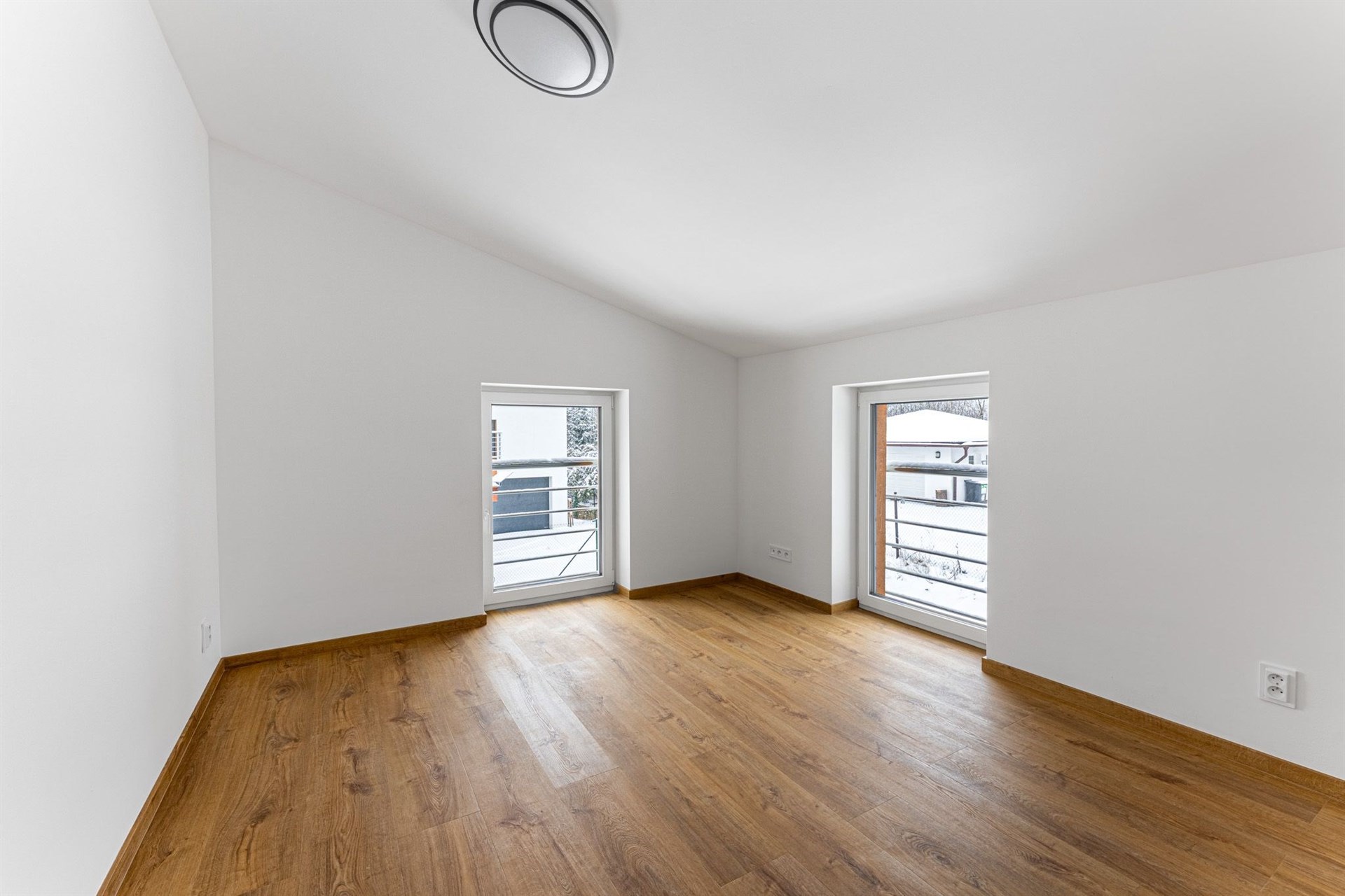 Podlahy pokryté kvalitním vinylem a dlažbou, okna s trojskly pro skvělou tepelnou a zvukovou izolaci.