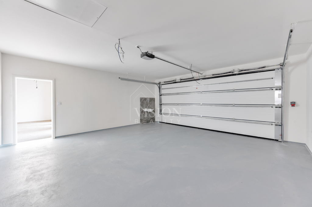Součástí nemovitosti je garáž pro dvě auta a další venkovní stání. Za domem je dlážděná teráska pro posezení a u oken příprava na okenní rolety. Celá stavba je provedena ve vysokém standardu – kvalitní materiály, precizní zpracování, moderní technologie i prvky, které podtrhují komfort a dlouhodobou hodnotu domu.