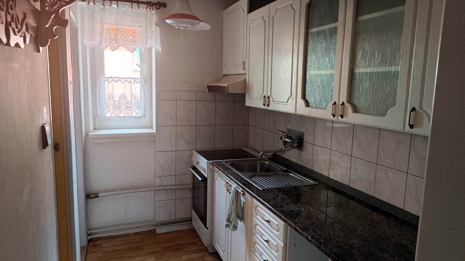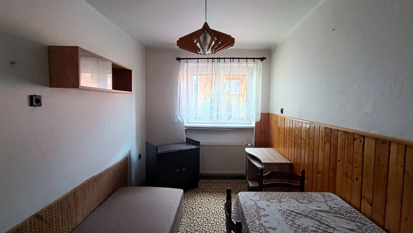 Celková plocha bytové jednotky včetně dvou sklepů v suterénu je cca. 74 m2. Dispozičně je velmi pěkně řešena, místnosti jsou prostorné, světlé. Sestává se ze vstupní předsíně ze které se vchází samostatně do kuchyně a všech pokojů. Z kuchyně se vchází do koupelny a WC. K bytu patří dva sklepy. Topení řešeno vlastní elektrokotlem. Ohřev vody bojlerem.